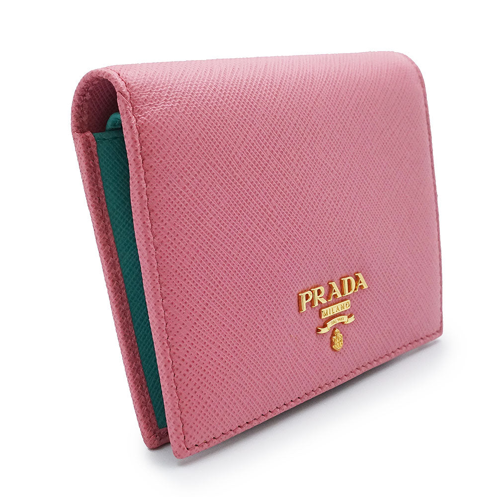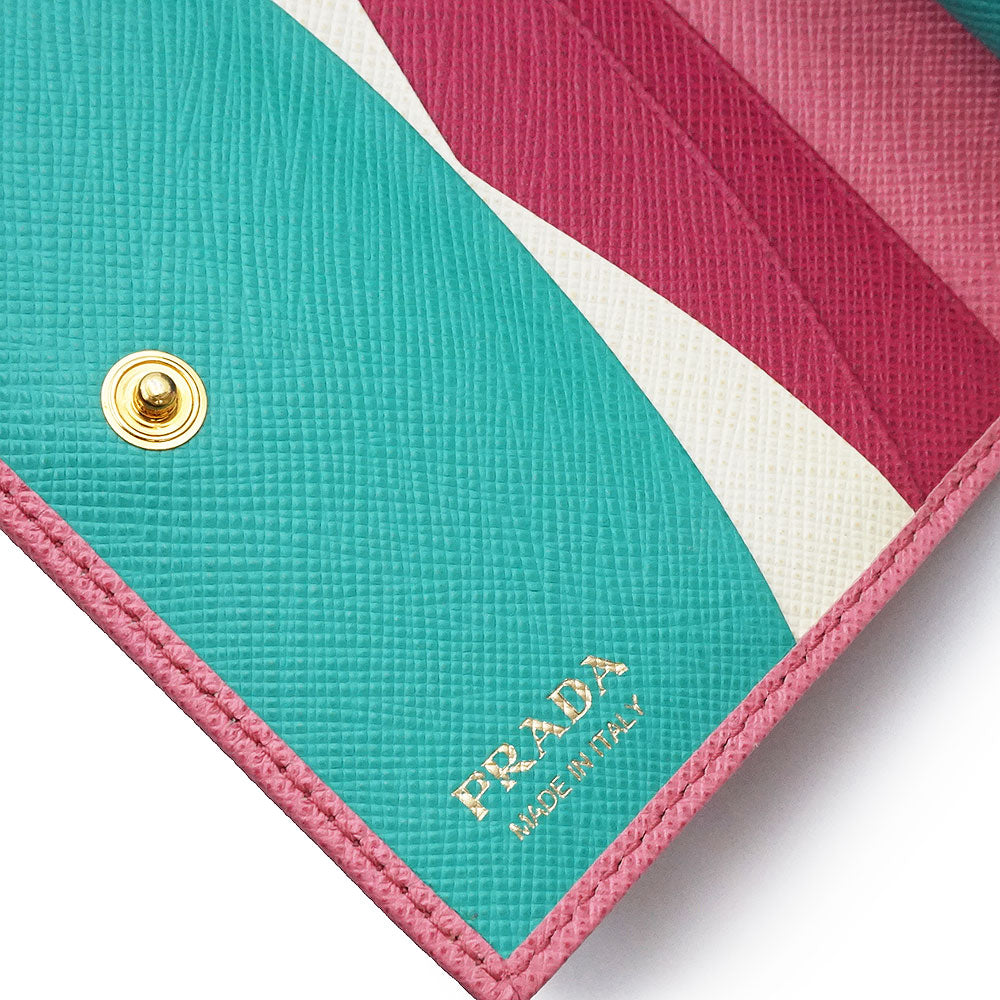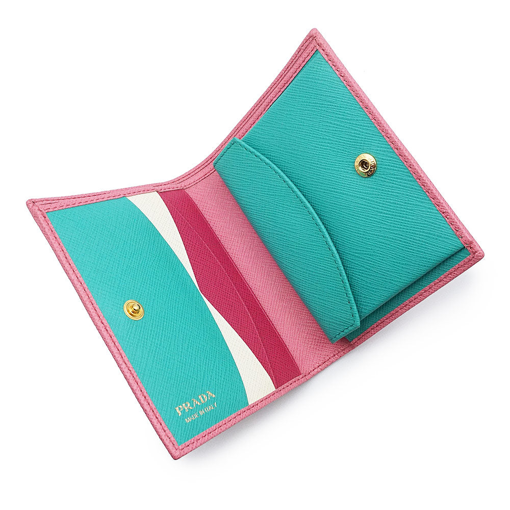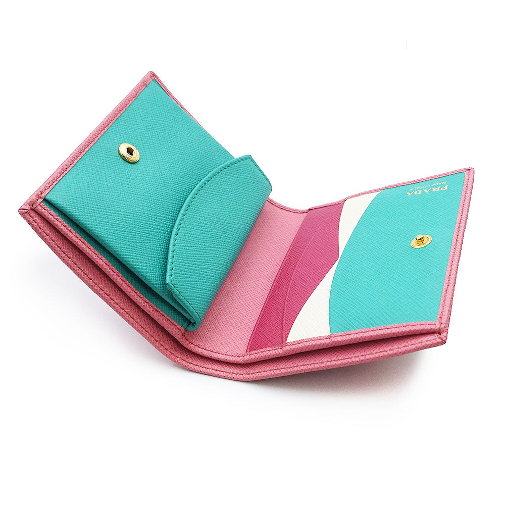 【未使用保管品】PRADA プラダ 1MV204 サフィアノ サフィアーノ マルチカラー ベゴニア フューシャ ピンク コンパクト 二つ折り財布 カーフレザー ゴールド金具 箱付