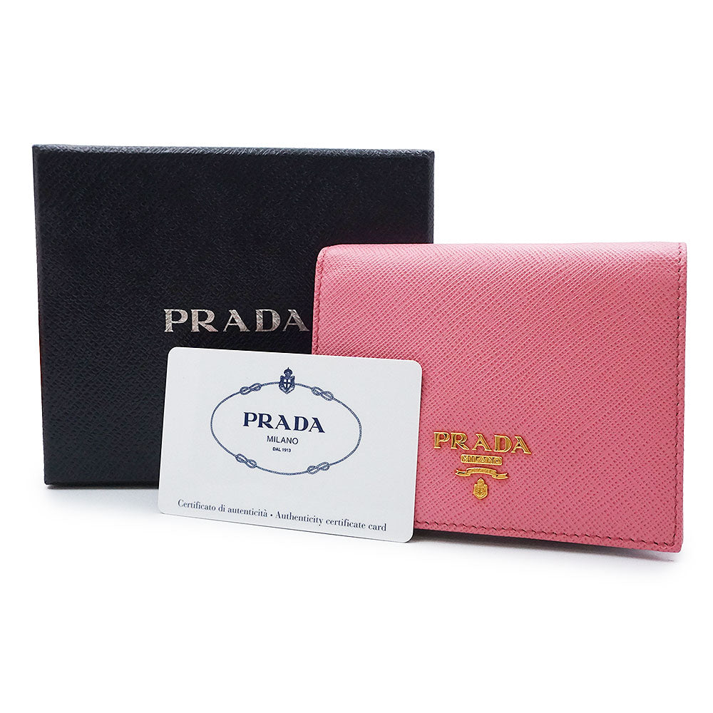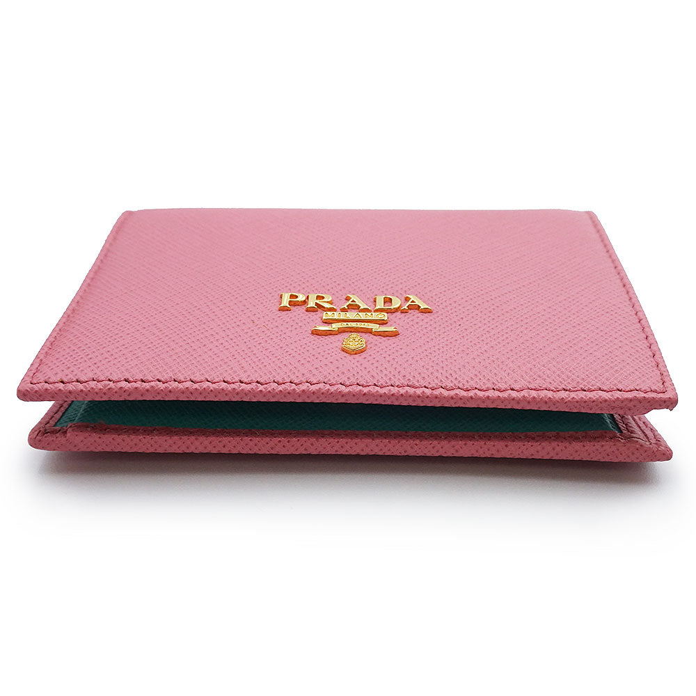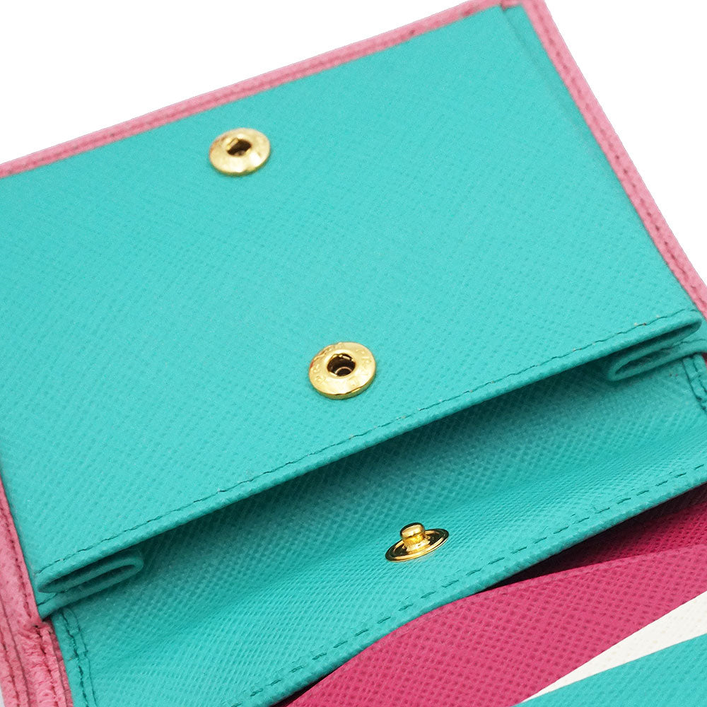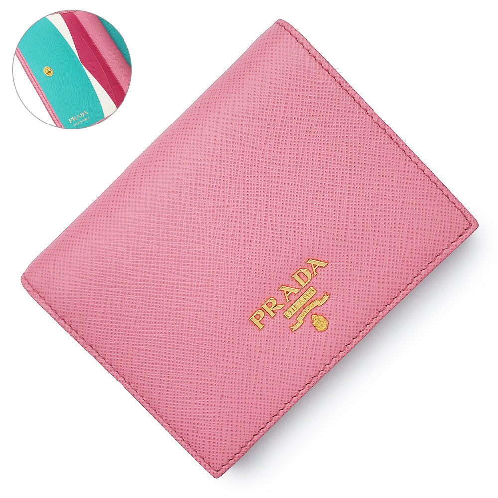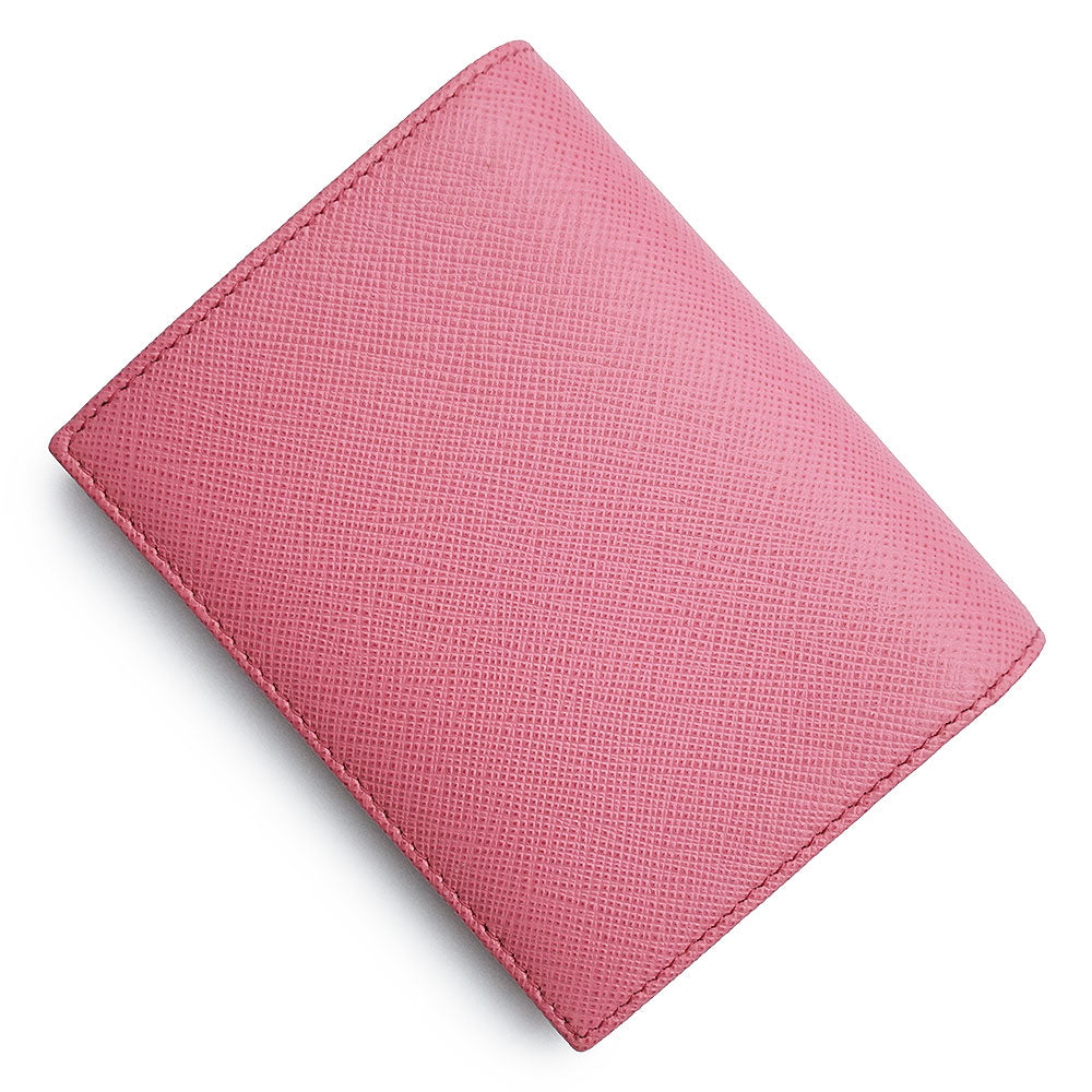 【未使用保管品】PRADA プラダ 1MV204 サフィアノ サフィアーノ マルチカラー ベゴニア フューシャ ピンク コンパクト 二つ折り財布 カーフレザー ゴールド金具 箱付