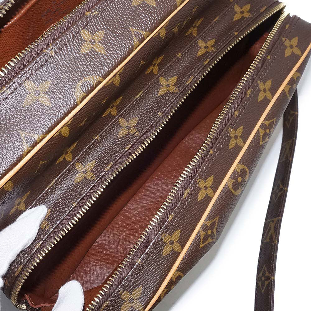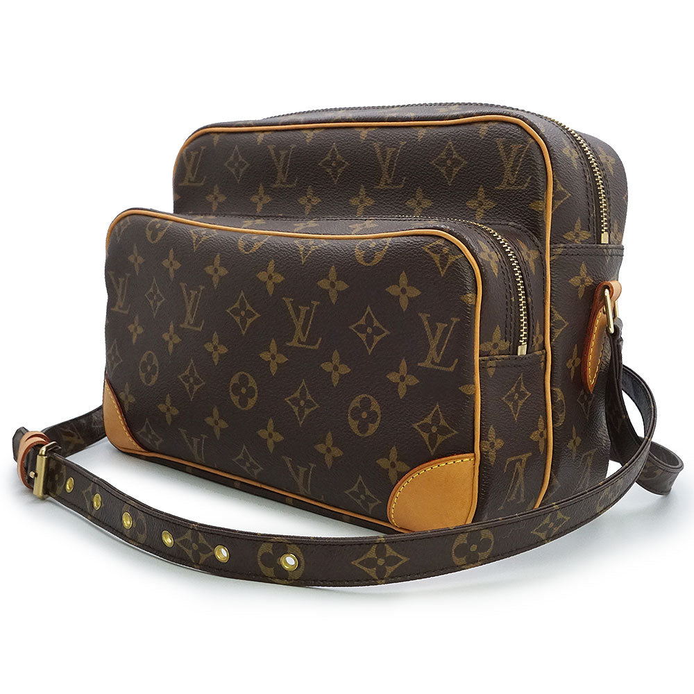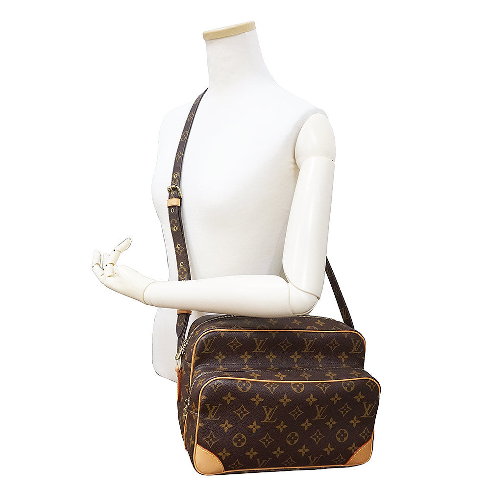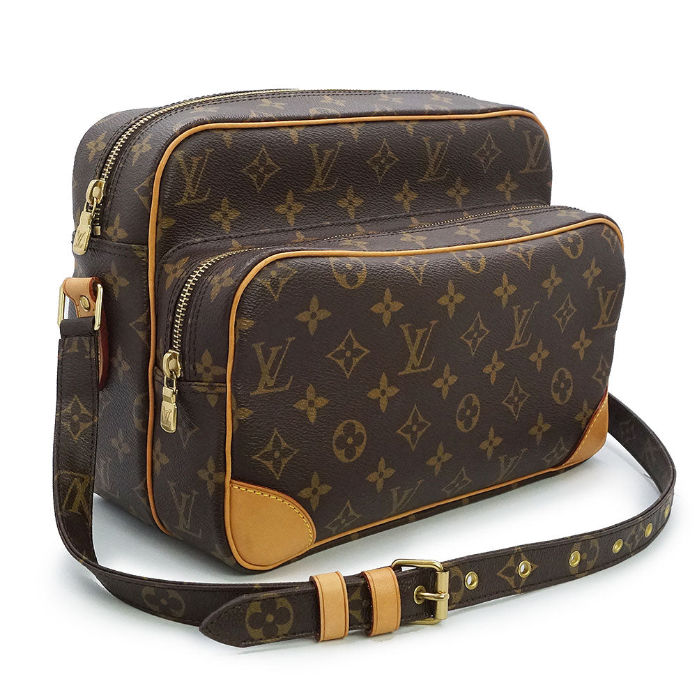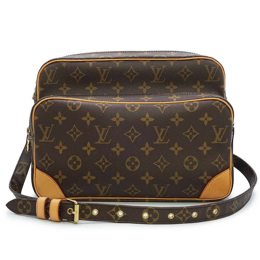 ルイ ヴィトンを代表する定番ラインのモノグラム柄ショルダーバッグ「ナイル」。長さ調節可能のショルダーストラップで、肩掛け、斜め掛けも自由自在。カジュアルスタイルにピッタリです。