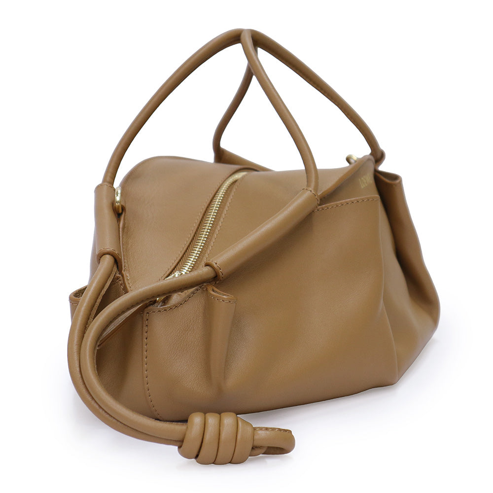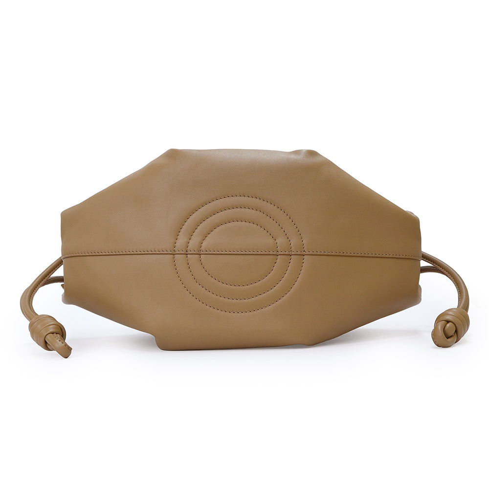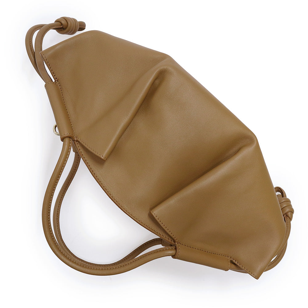 バッグ本体にハンドルを通す独特な“ソフトプリーツ”構造でエレガントなシルエットに作り上げられた軽量なレザーバッグ。コイル状の結び目をシグネチャーとして両端にあしらうなど細部にまで、こだわりが光るバッグです。 |