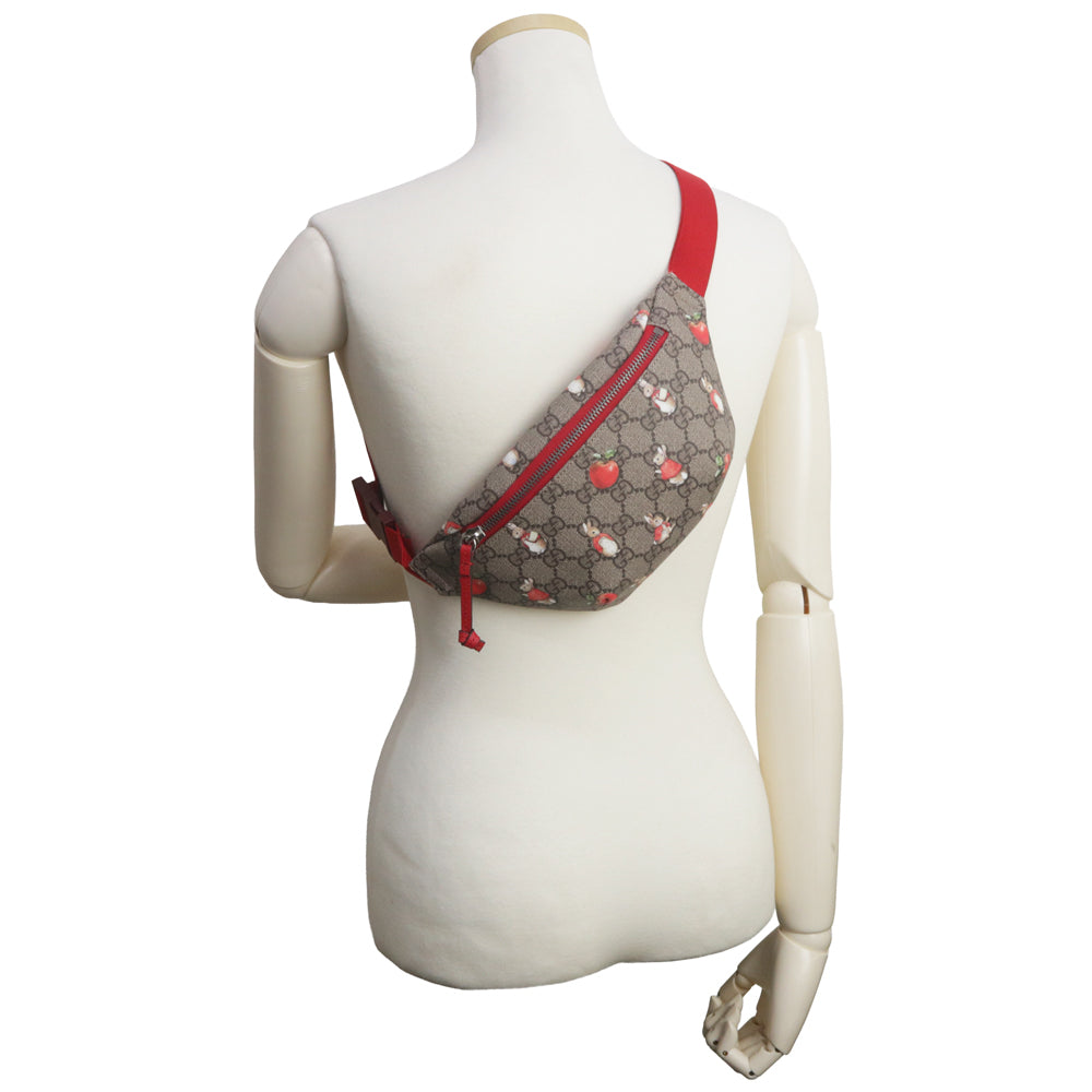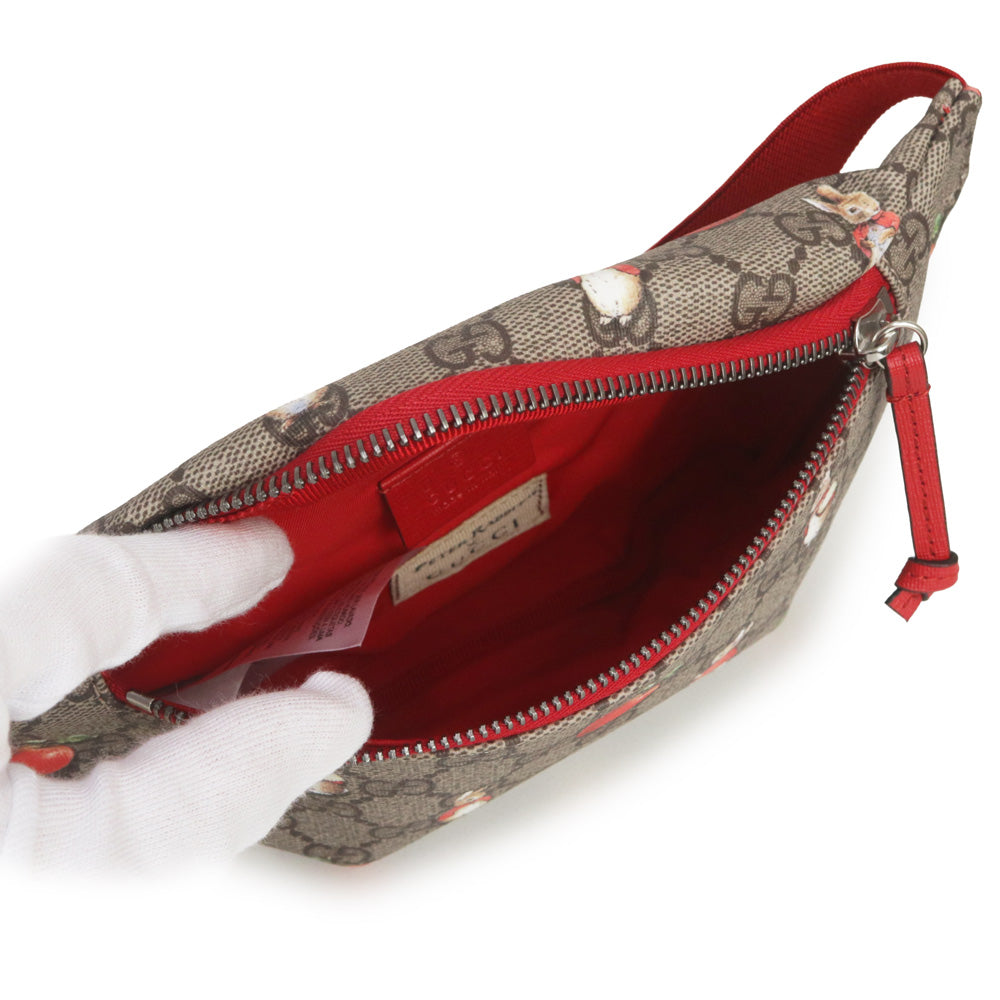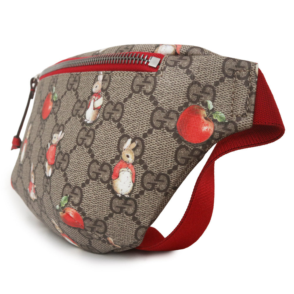 【新品・未使用品】グッチ GUCCI チルドレンズ ピーターラビット コラボ キッズ ベルト ウエスト ボディバッグ 斜め掛け GGスプリームキャンバス ベージュ レッド シルバー金具 502095