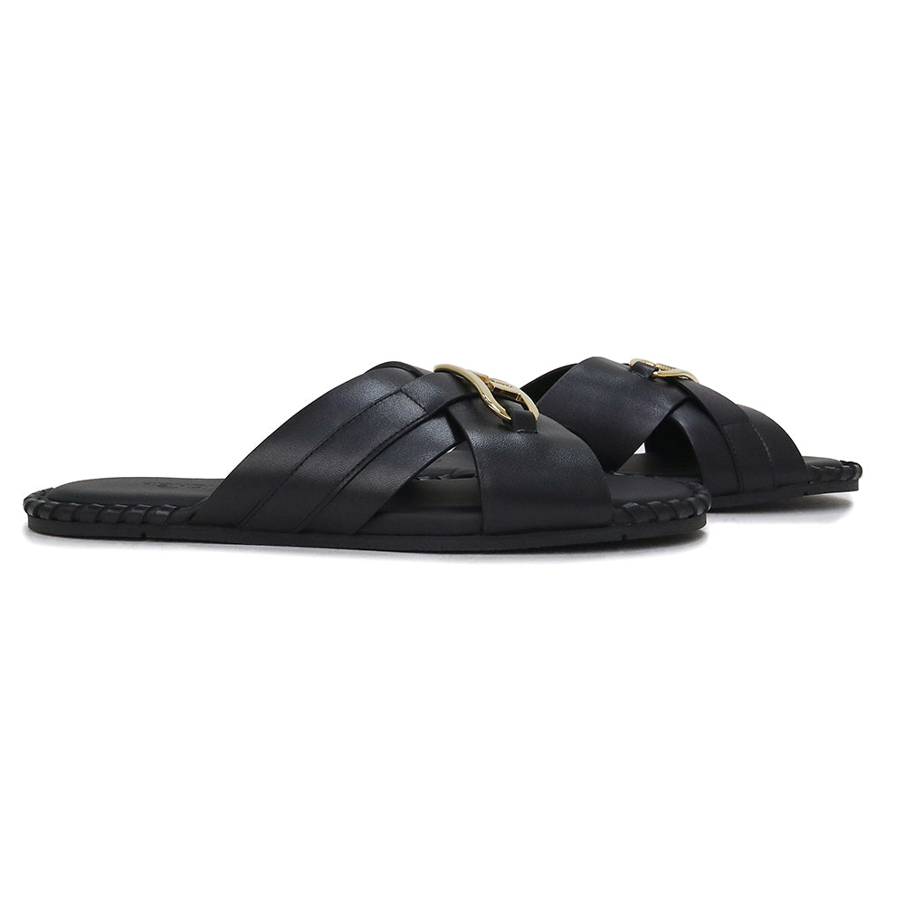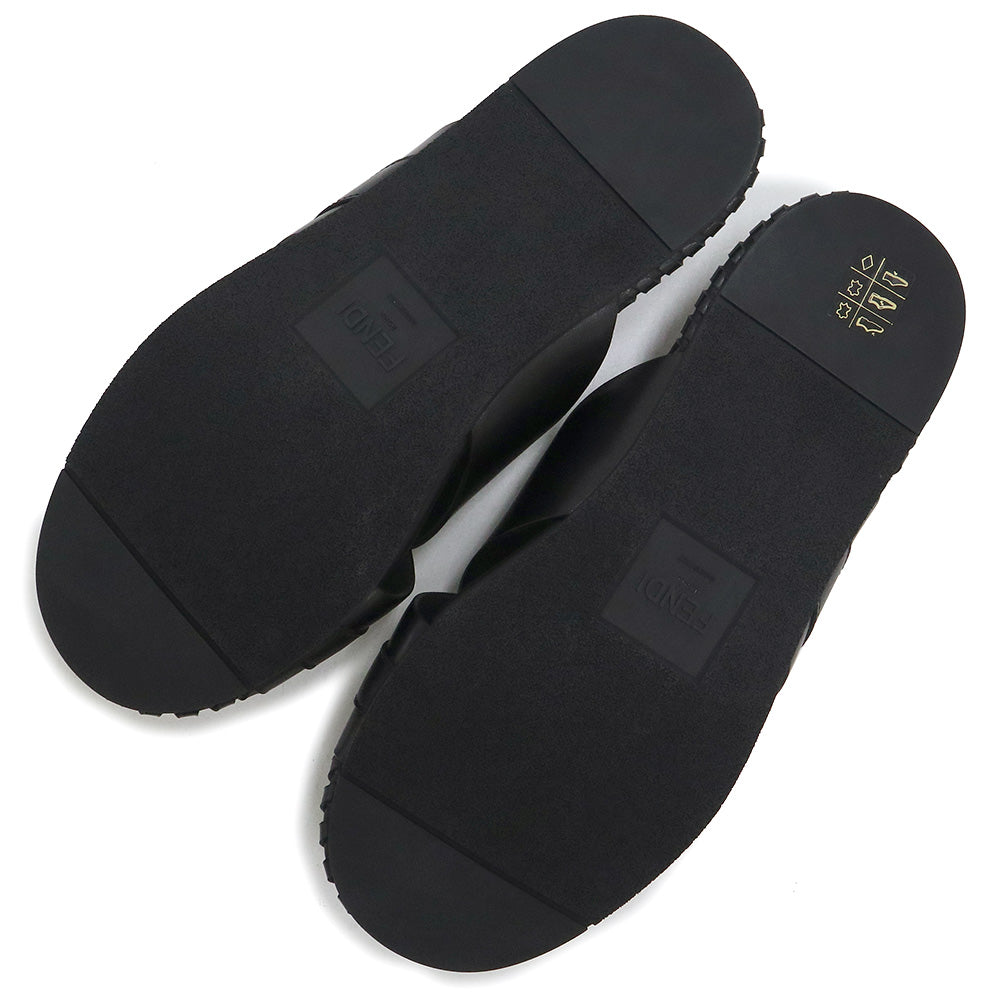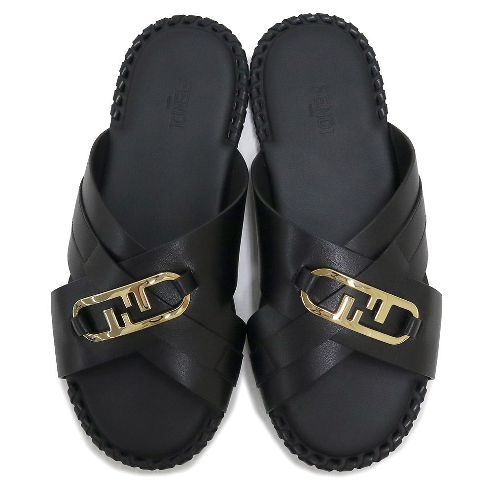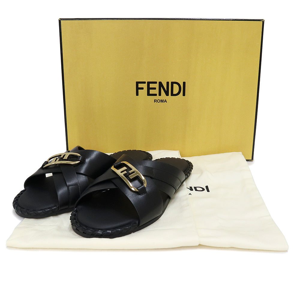 【未使用保管品】フェンディ FENDI スライドサンダル 靴 #5 24cm カーフスキン レザー ブラック ゴールド金具 7X1585 箱付