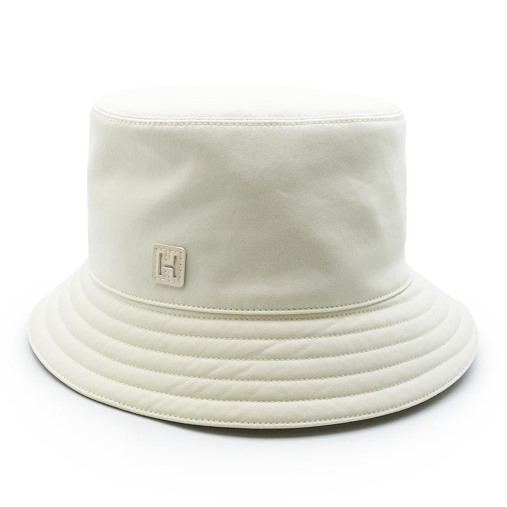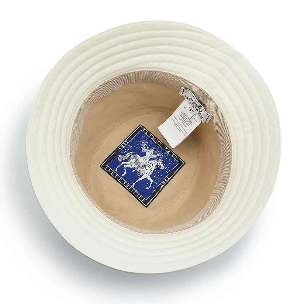 【未使用保管品】エルメス HERMES フレッド Hカット バケットハット 帽子 57CM コットン97% ポリウレタン3% カーフスキン レザー フィオールディラッテ ナタ アイボリー 箱付