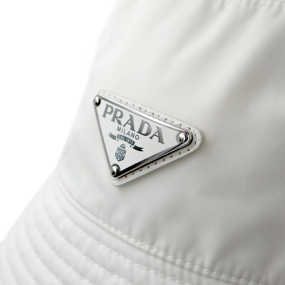 【未使用保管品】プラダ PRADA 1HC137 トライアングル 三角ロゴプレート Re-Nylon バケット ハット 帽子 #M 58cm テスート ナイロン ビアンコ ホワイト シルバー金具
