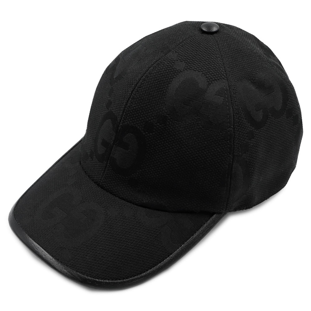 【未使用保管品】GUCCI グッチ 727562 ベースボールキャップ #L 59CM 帽子 ハット ジャンボGGキャンバス レザー ブラック シルバー金具