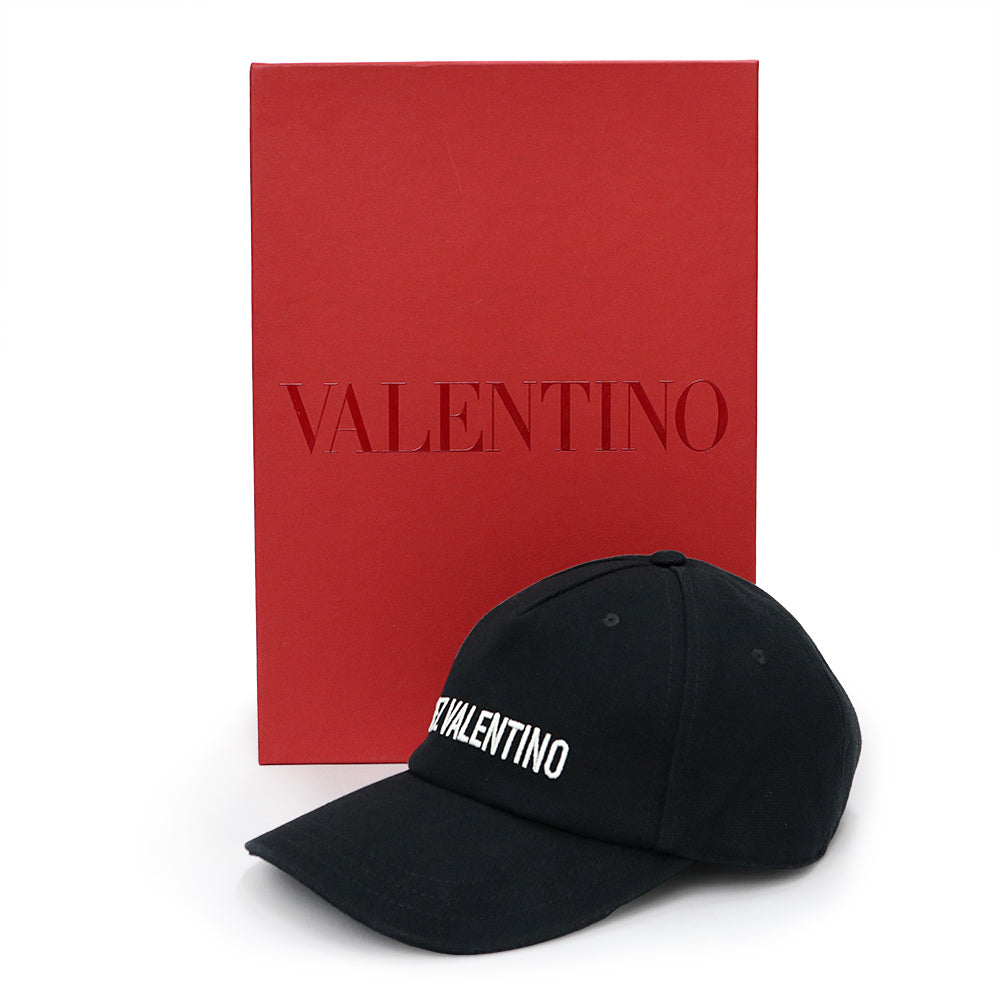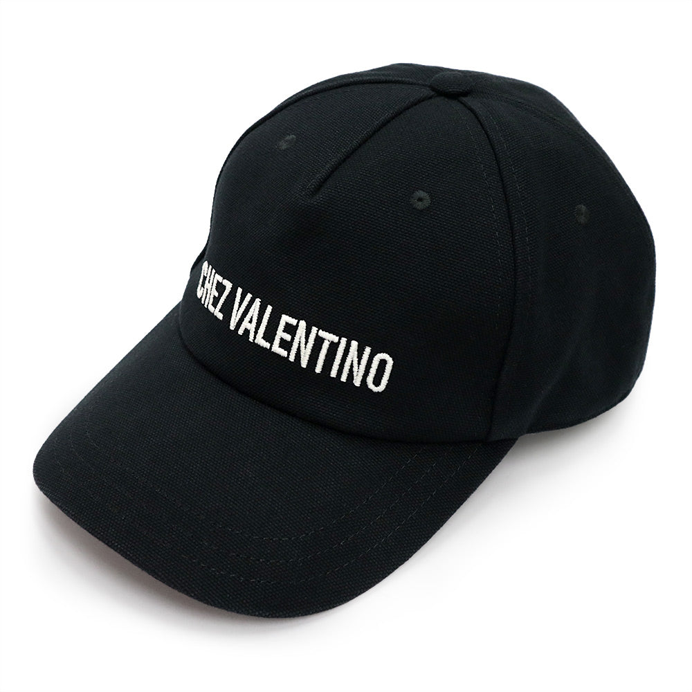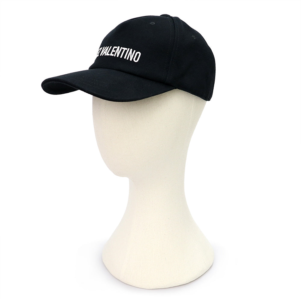 【美品】VALENTINO ヴァレンティノ 6Y2HDA41FVH_0NA エンブロイダリー ベースボールキャップ コットン ブラック ハット 帽子 ゴールド金具