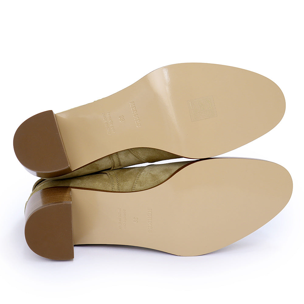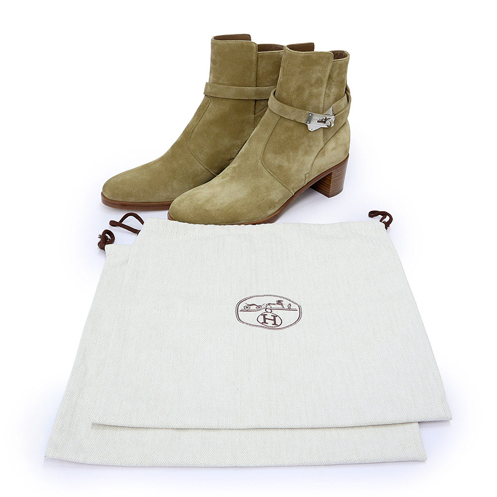 【未使用保管品】HERMES エルメス ケリー フレンチ 50 ショート ヴォーベロア Beige Gobi ベージュ ゴビ ブーツ シューズ 靴 #39 25cm レザー シルバー金具