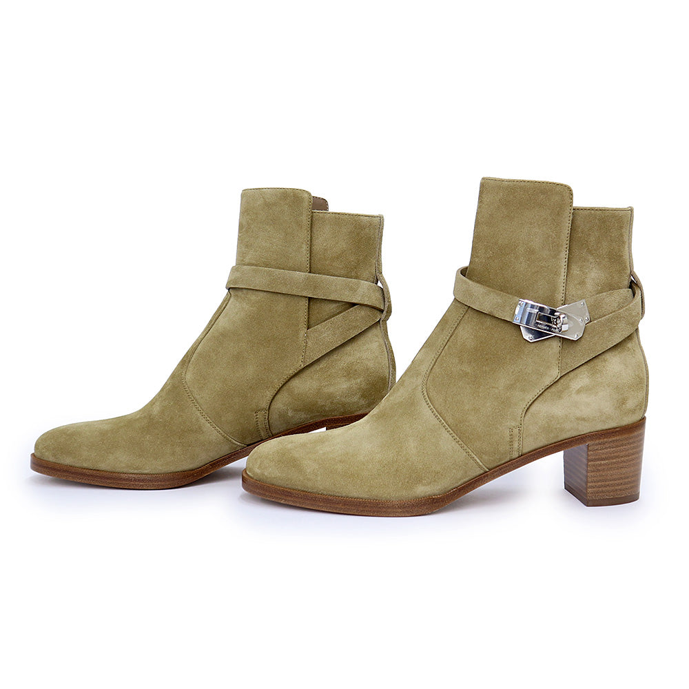 エルメスを象徴するクラスプがポイントになった、エレガントなデイリースタイルを確立するしなやかでタイムレスなショートブーツ。上品なカラーで落ち着いた雰囲気に。カジュアルなお洋服に合わせても、エレガントさを感じられます。 |