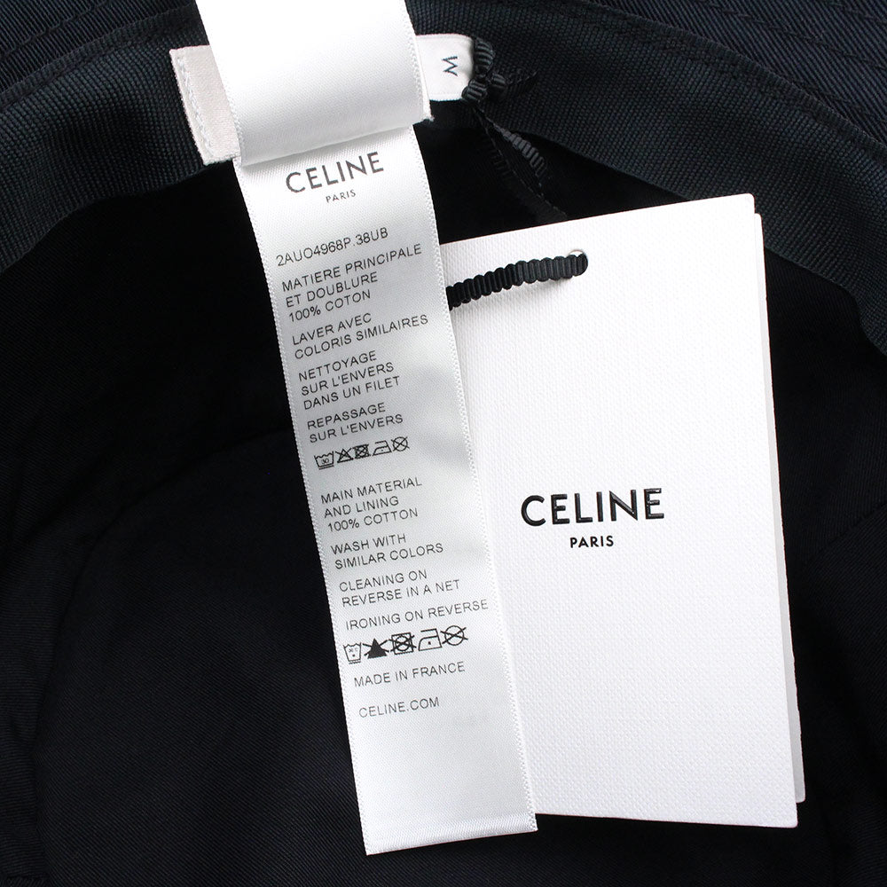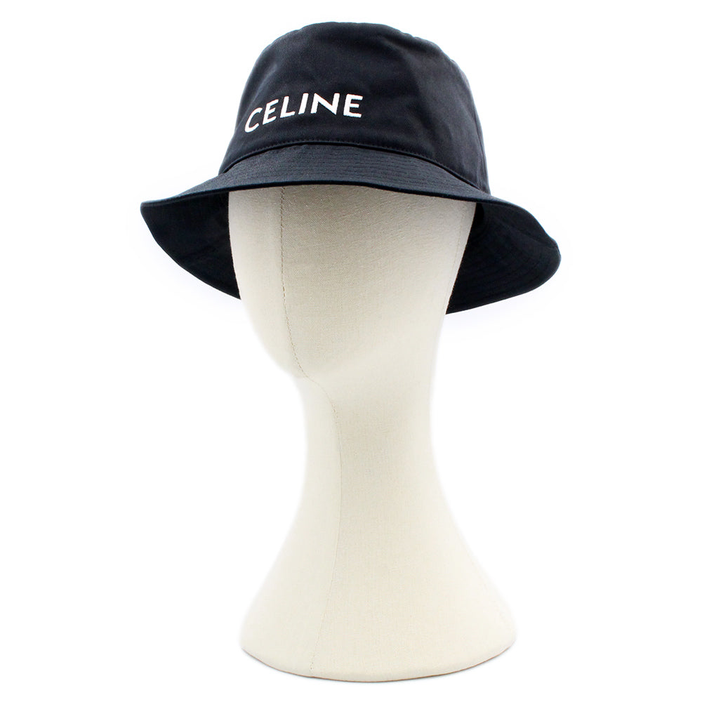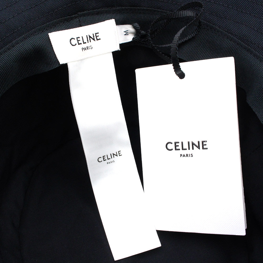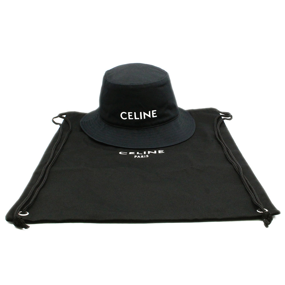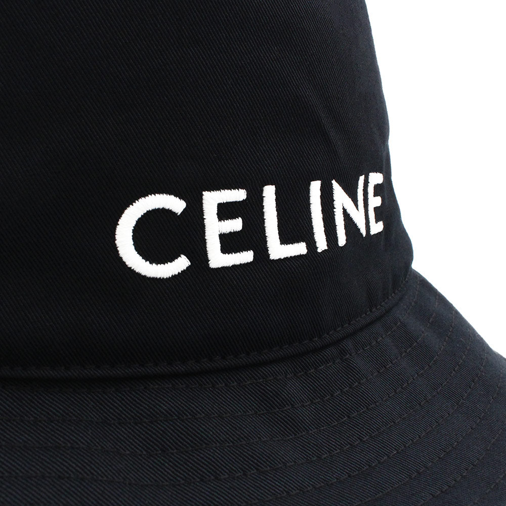 CELINE セリーヌ ロゴ刺繍のブラックバケットハット。シンプルで高級感のあるデザインで、男女問わずお使いいただけます。コーディネートのアクセントとしておすすめです。