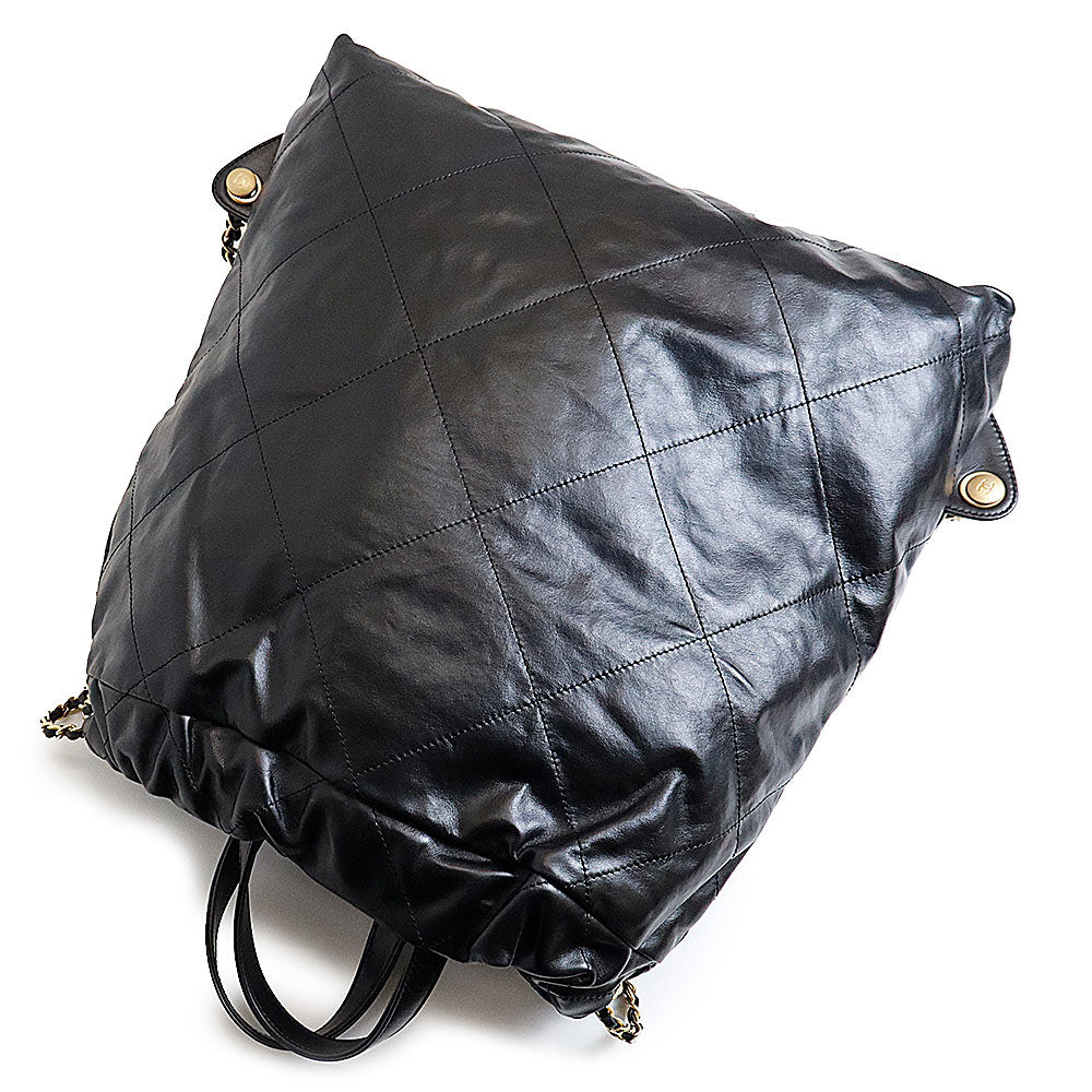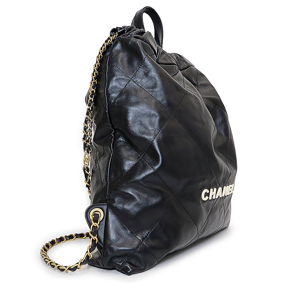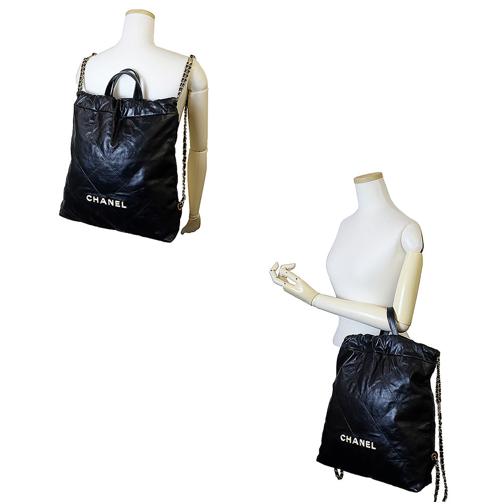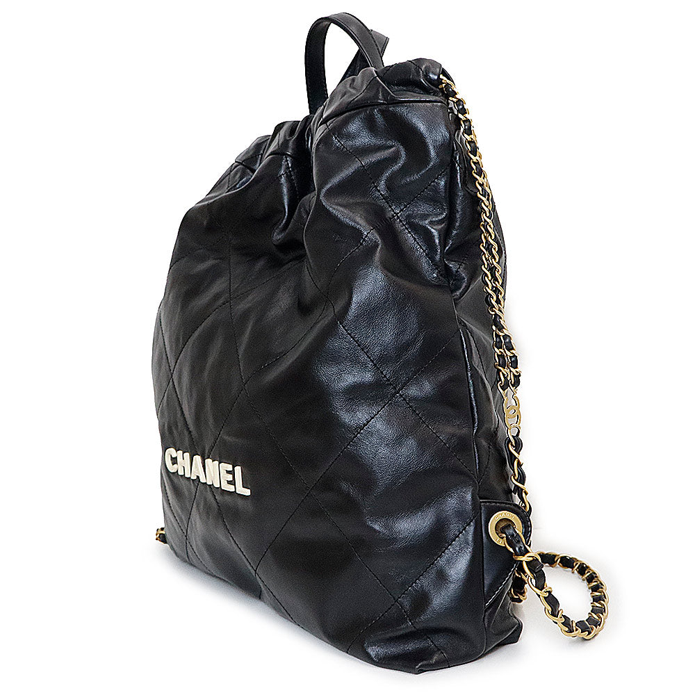 【未使用 展示品】シャネル CHANEL CHANEL 22 マトラッセ チェーン リュック デイパック バックパック シャイニーラムスキン ブラック ゴールド金具 AS3313
