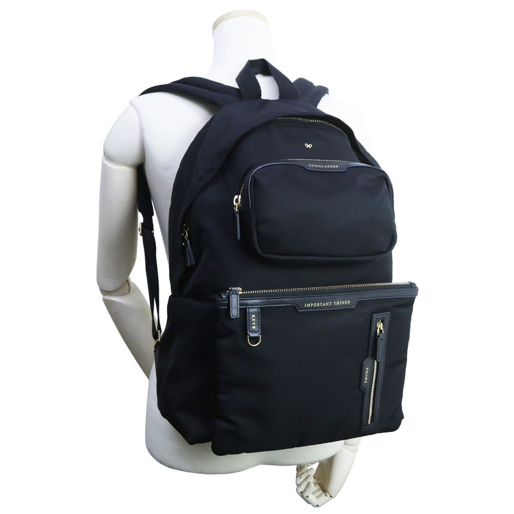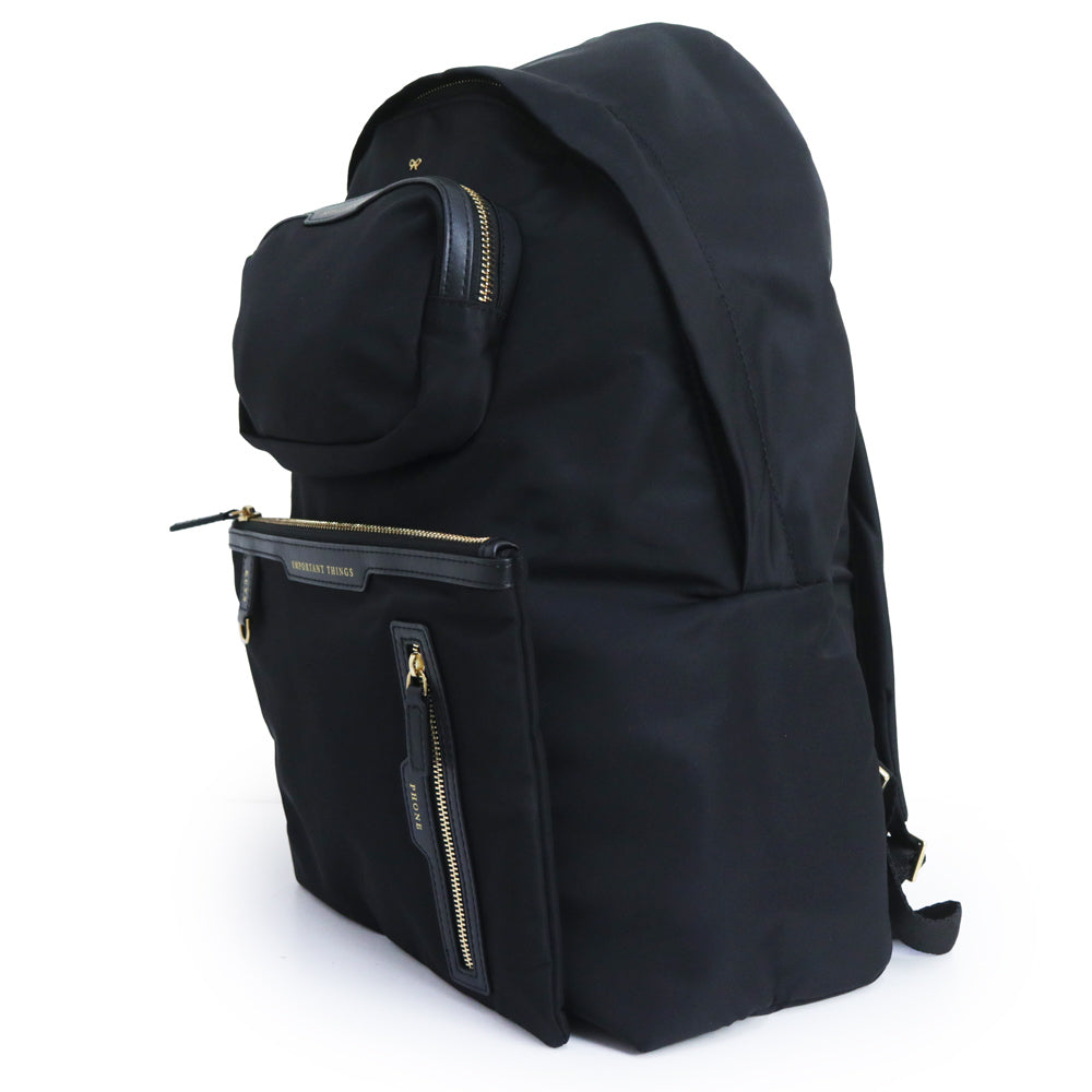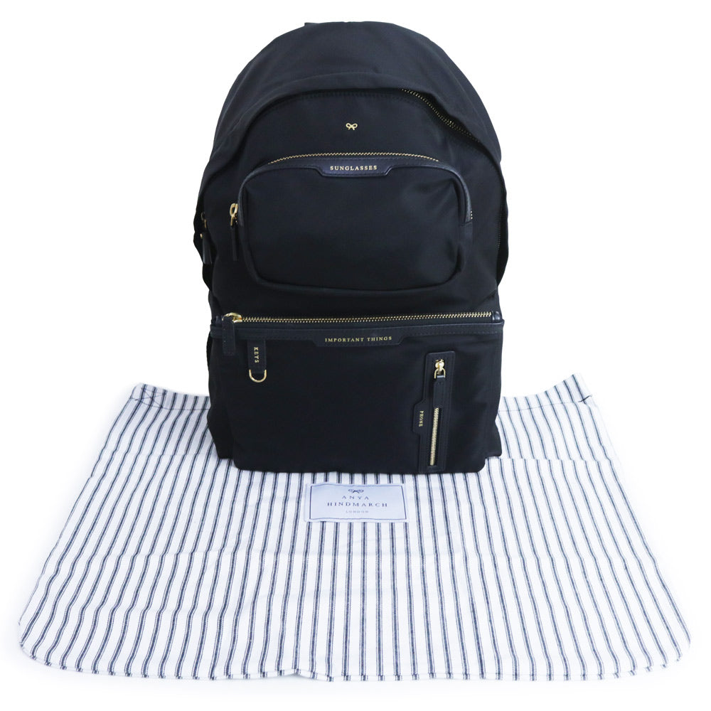 【未使用 展示品】アニヤ ハインドマーチ Anya Hindmarch マルチポケット バックパック リュック デイパック ナイロン ブラック ゴールド金具 5050925193443