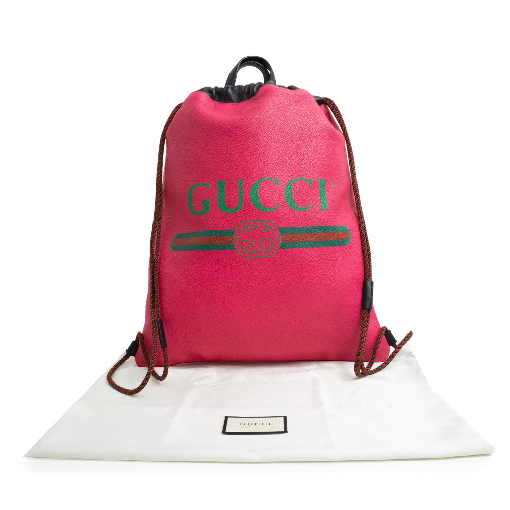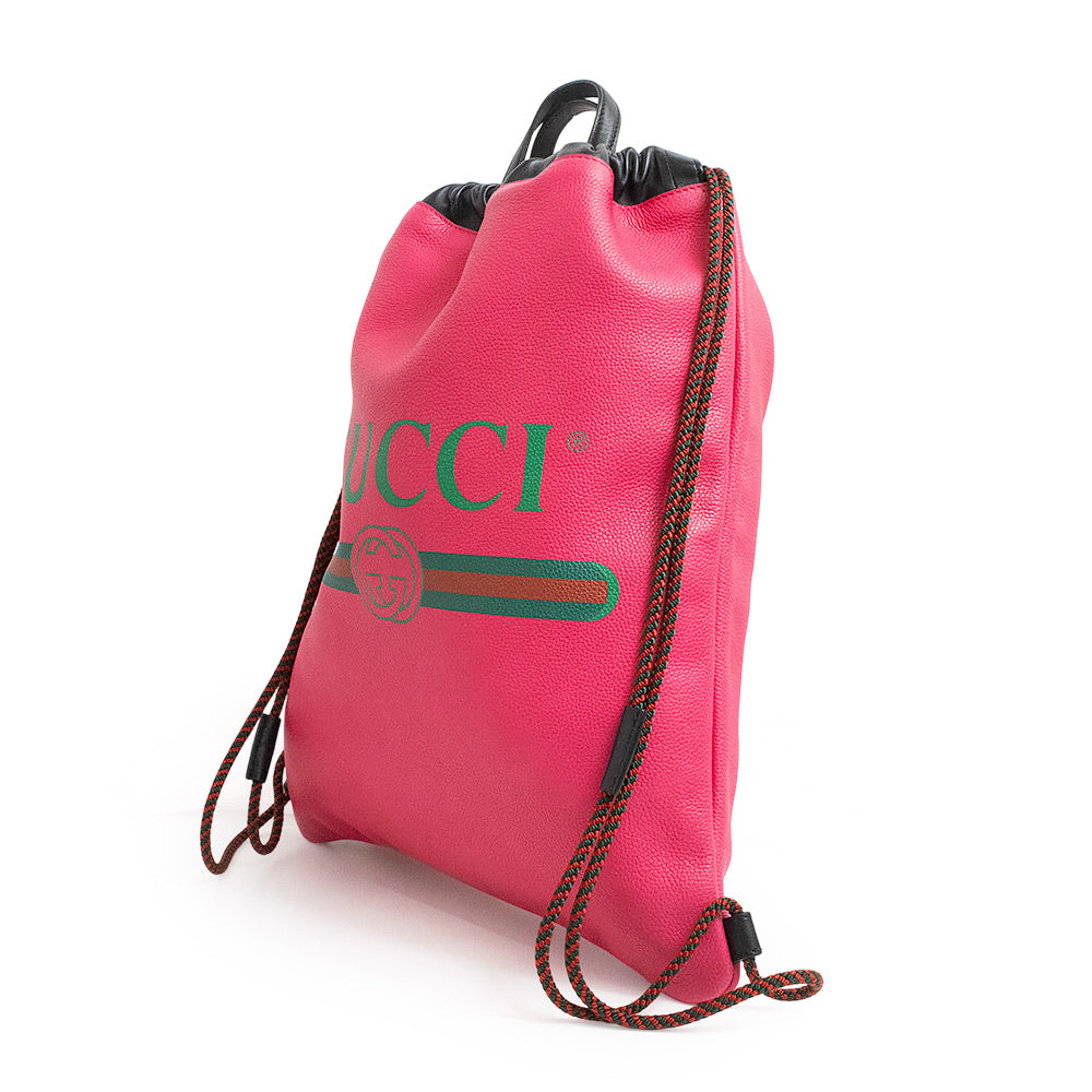 【新品・未使用品】グッチ GUCCI ロゴプリント ドローストリング ナップサック リュック デイパック バックパック カーフスキン レザー ピンク 494053