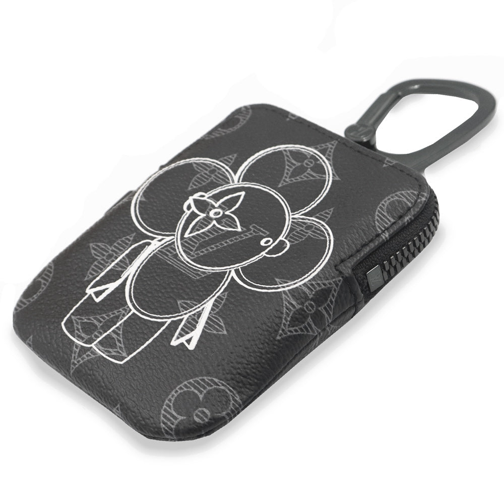黒とグレーの「モノグラム・エクリプス」キャンバスを使用されたキーリング付きのジップポーチです。ブランドマスコット「ヴィヴィエンヌ」が描かれた遊び心あるデザインで、鍵や小物を一緒に持ち運べる実用性も兼ねています。フック付きでバッグなどに取り付け可能な構造になっており、機能性とファッション性を両立したアイテムです。 |