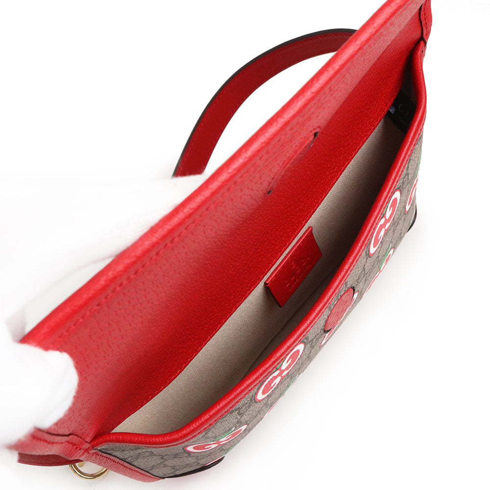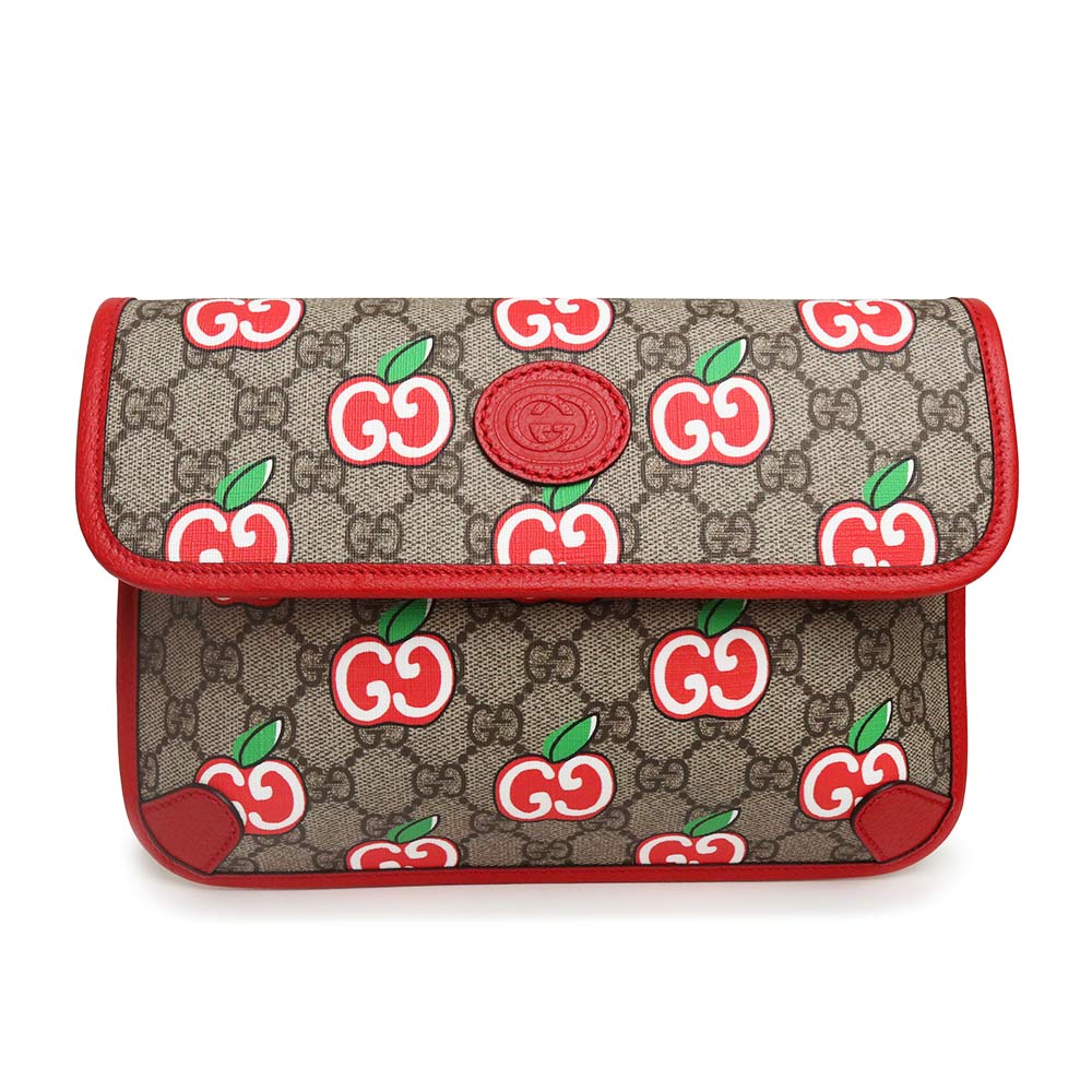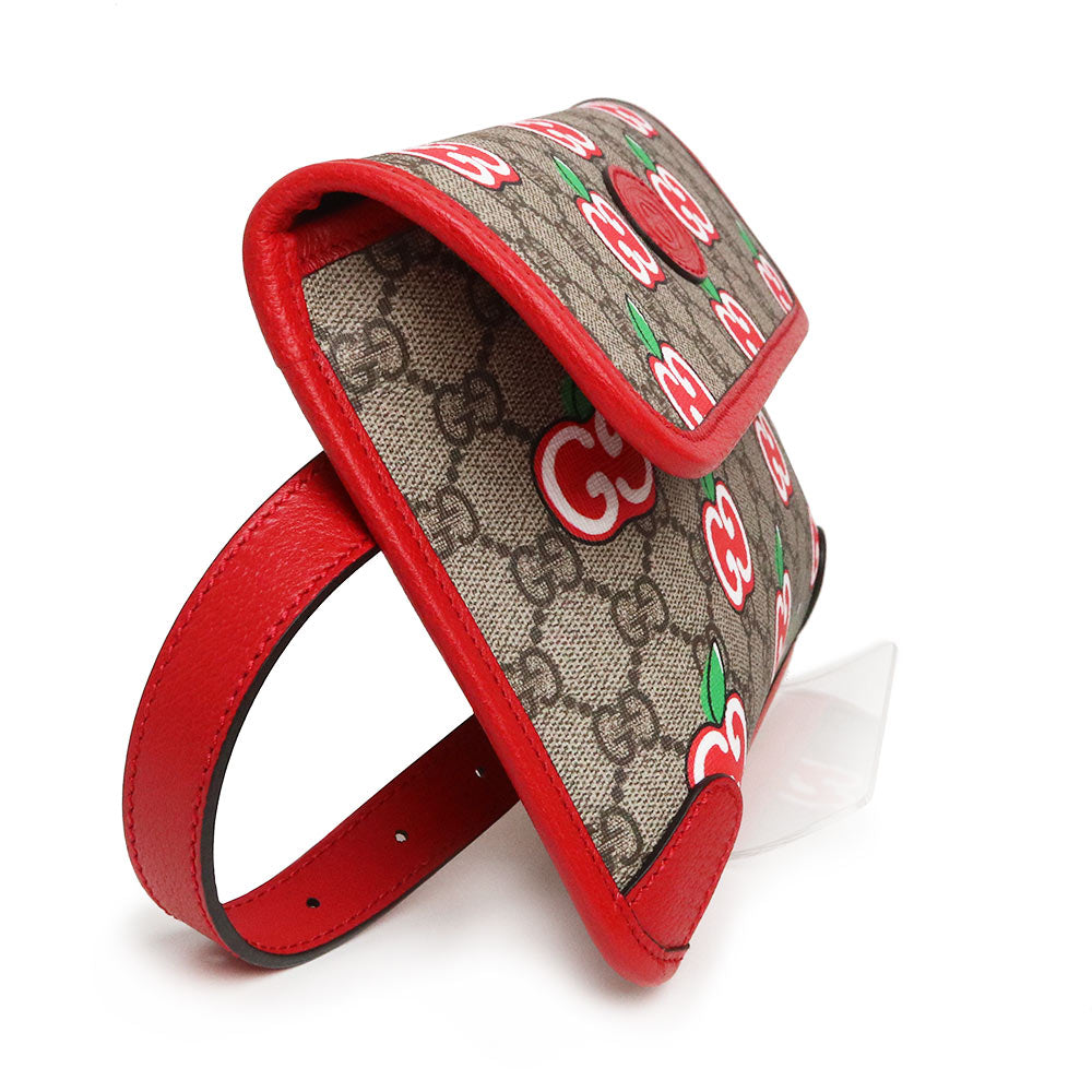 【新品・未使用品】古馳 GUCCI GG蘋果 印花 蘋果 腰包 腰帶包 GG Supreme帆布 皮革 紅色 紅 金色金屬件 625233 附盒