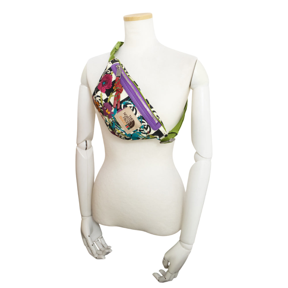 【未使用 展示品】グッチ GUCCI THE NORTH FACE x GUCCI ノースフェイスコラボ ベルト ウエスト ボディバッグ 斜め掛け ナイロン レザー マルチカラー アンティークシルバー金具 650299