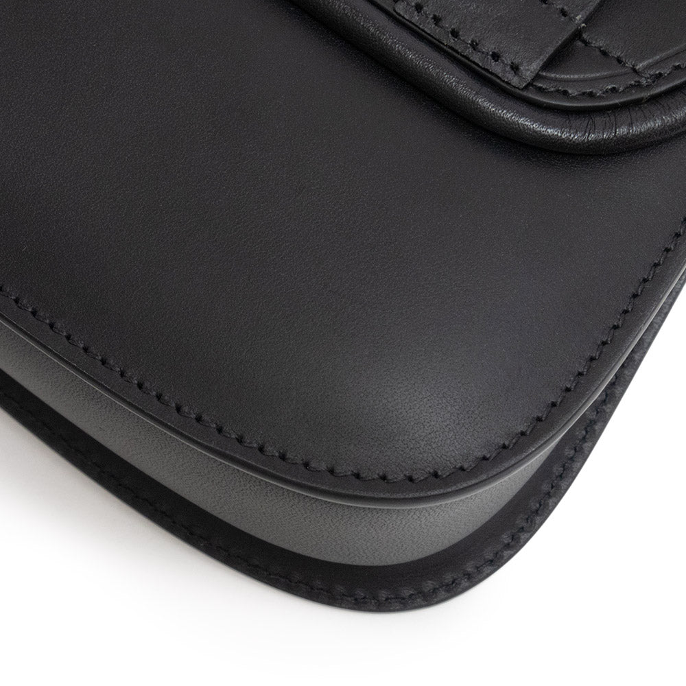 ブラックレザーにアンティークシルバーホースビットが煌めくベルト バッグ。ベルトは着脱可能でベルトとハンドバッグに分けて使用も可能です。 |