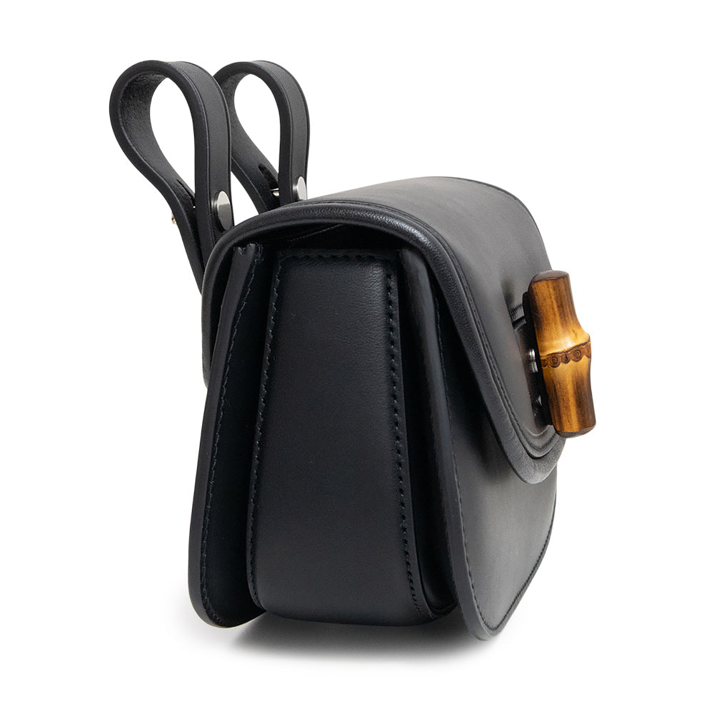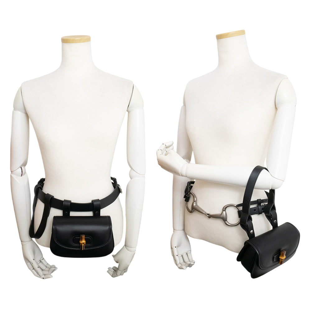 【未使用 展示品】グッチ GUCCI バンブー 1947 ミニ ベルトバッグ 3Way ハンド ウエストバッグ レザー ブラック アンティークシルバー金具 681137