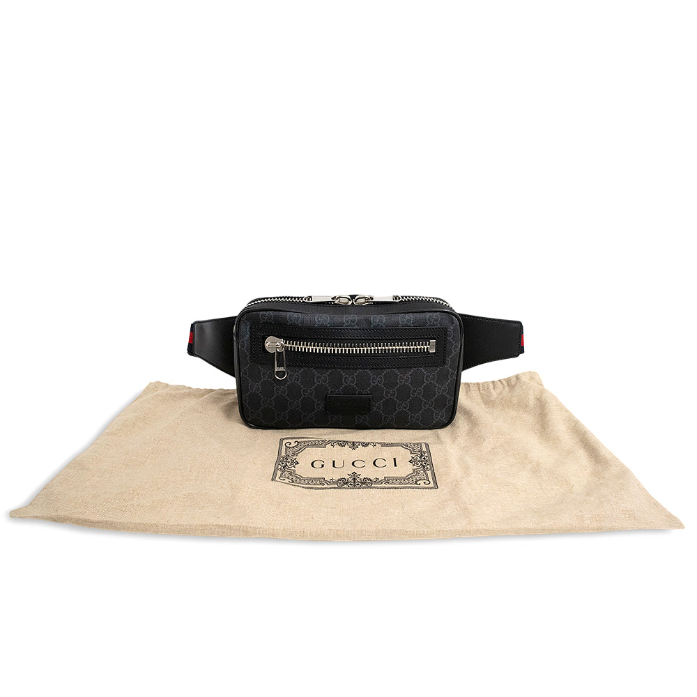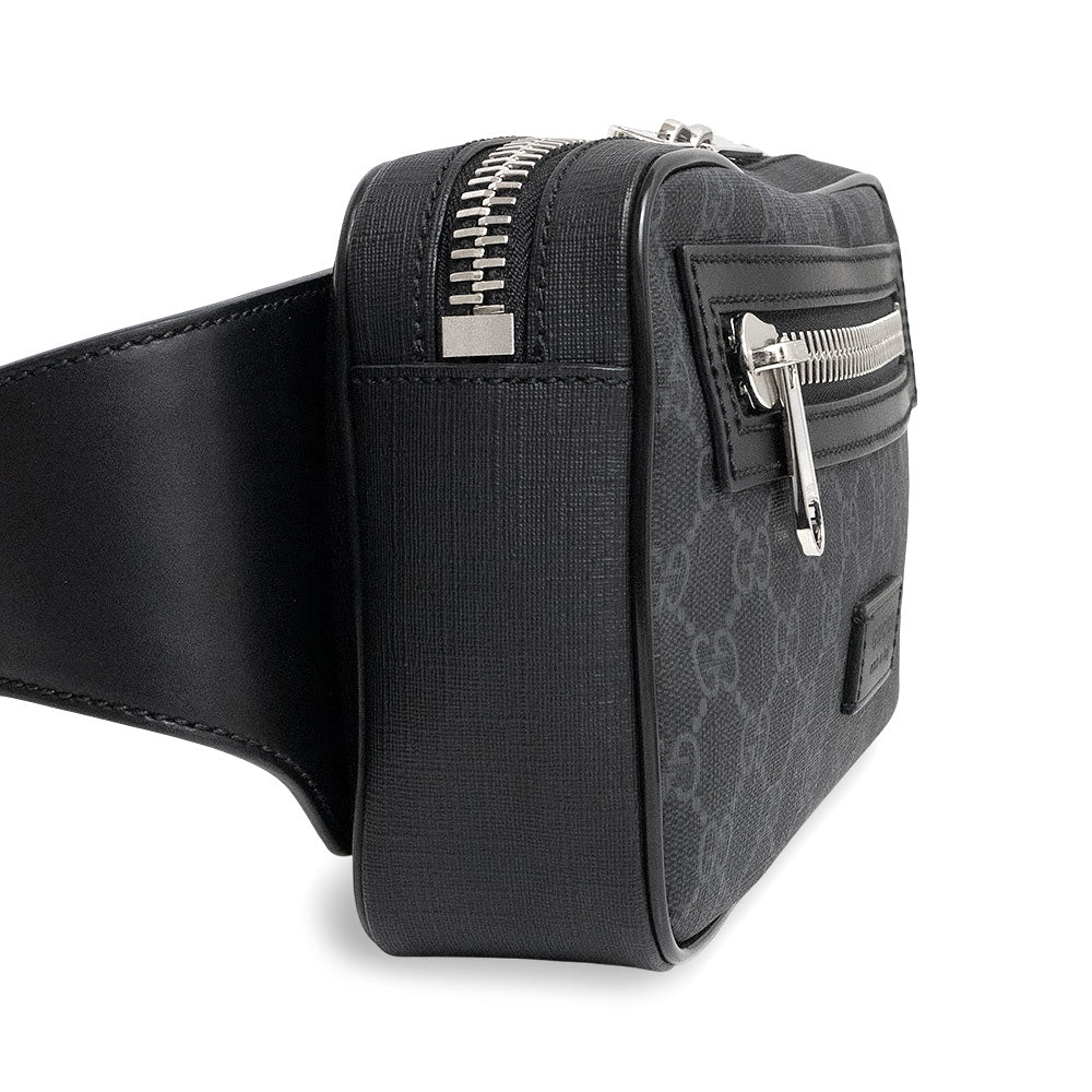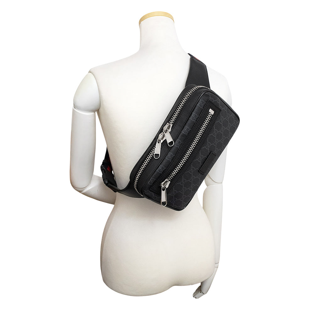 【未使用 展示品】グッチ GUCCI ウエスト ボディ ベルトバッグ 斜め掛け GGスプリームキャンバス レザー ブラック グレー シルバー金具 474293