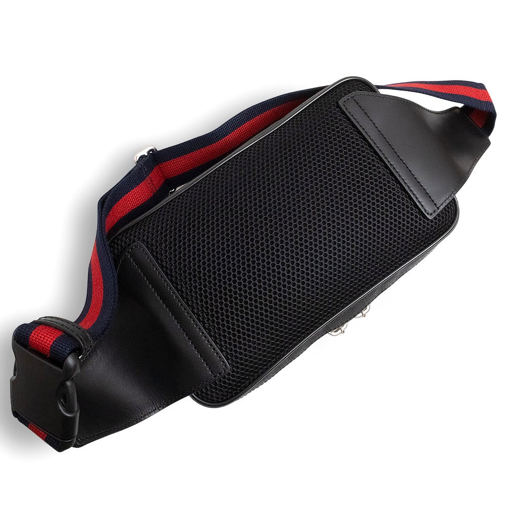 しなやかなGGスプリームのボディバッグです。調節可能なウエストストラップには、グッチを象徴するウェブストライプがあしらわれています。
