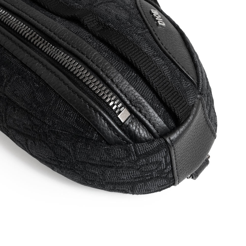 「Dior Scarab (ディオール スカラベ)」バッグ。ブラックの「ディオール オブリーク」ジャカードが使用されています。多数備えられた実用的なディテールによって、冒険心あふれるモダンなルックを演出します。 |