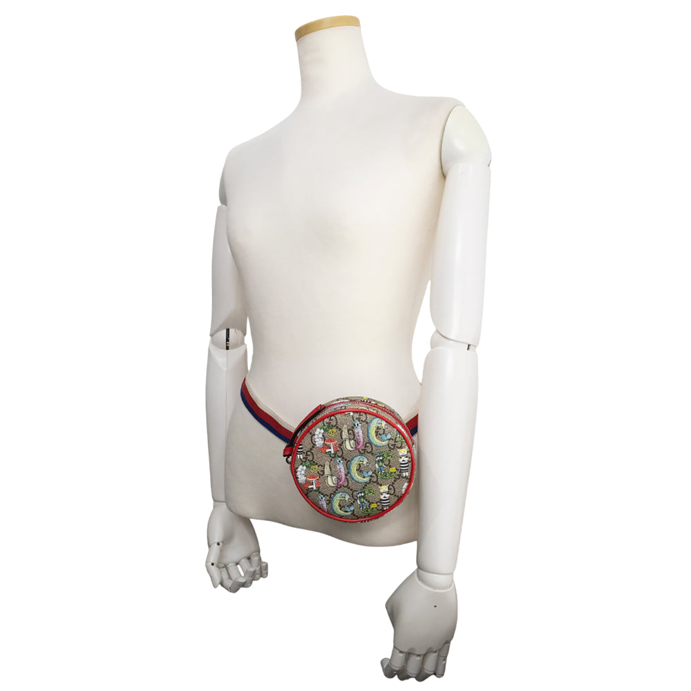 【新品・未使用品】GUCCI グッチ 502330 チルドレンズ ヒグチユウコ GGスプリームキャンバス ベージュ レッド ラウンド ミニ ウエストポーチ ウエストバッグ シルバー金具 箱付