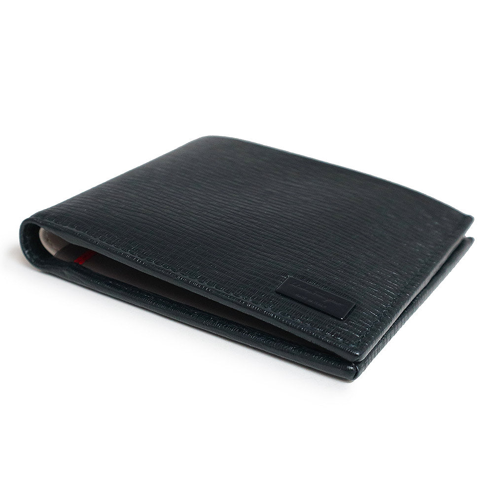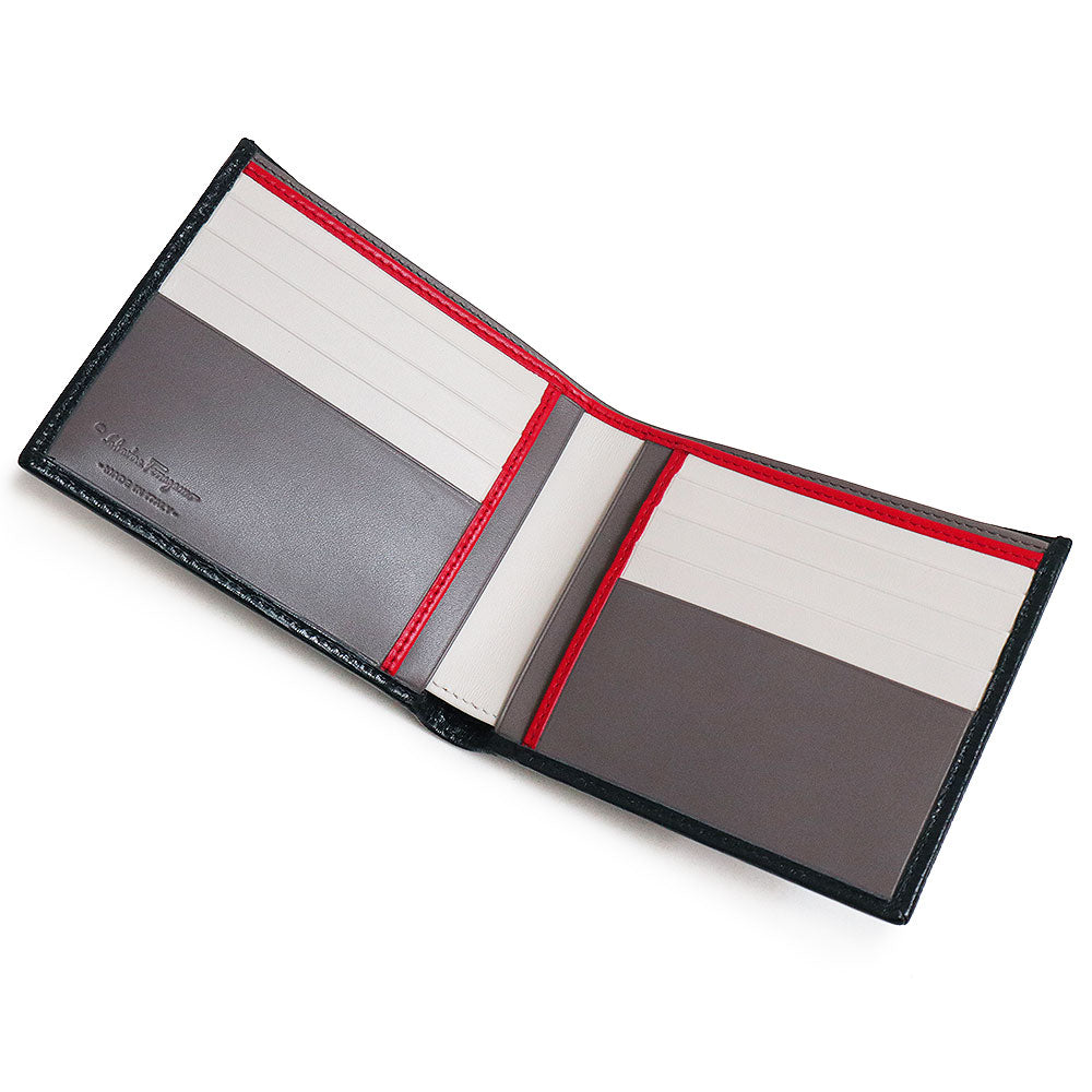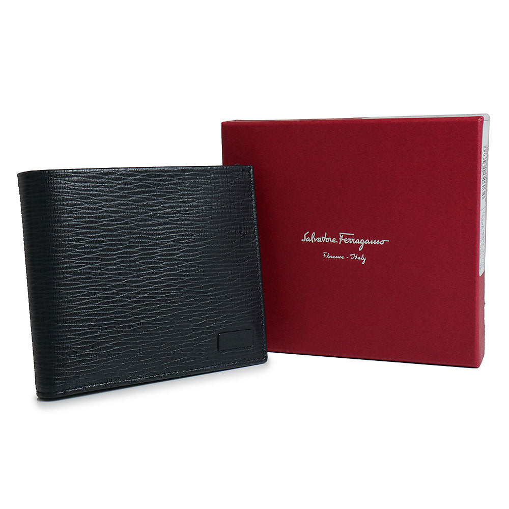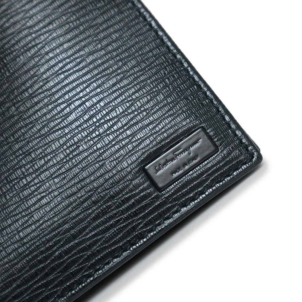 【新品・未使用品】薩爾瓦多·費拉格慕 Salvatore Ferragamo 標誌牌 雙折錢包 紙幣夾 小牛皮 皮革 黑色 灰褐色 象牙白 黑色 66 7068 附盒