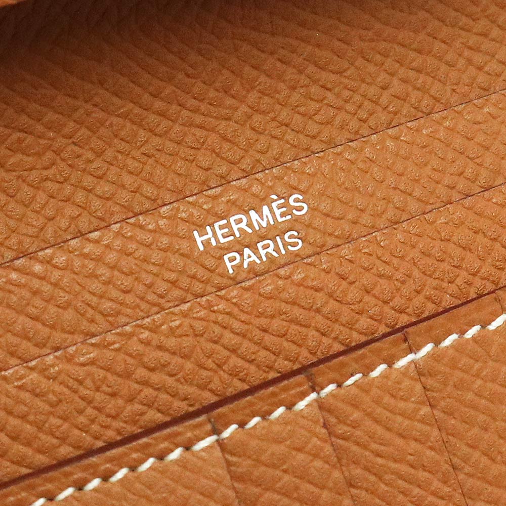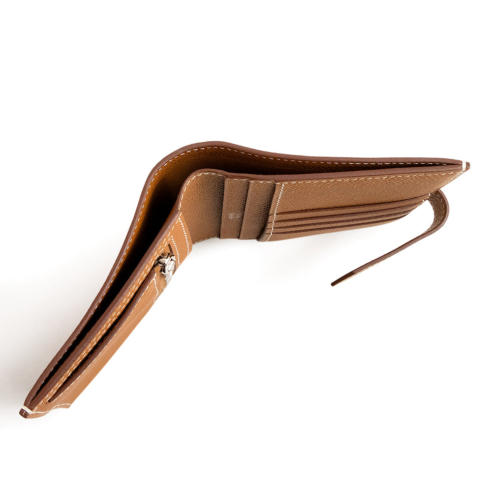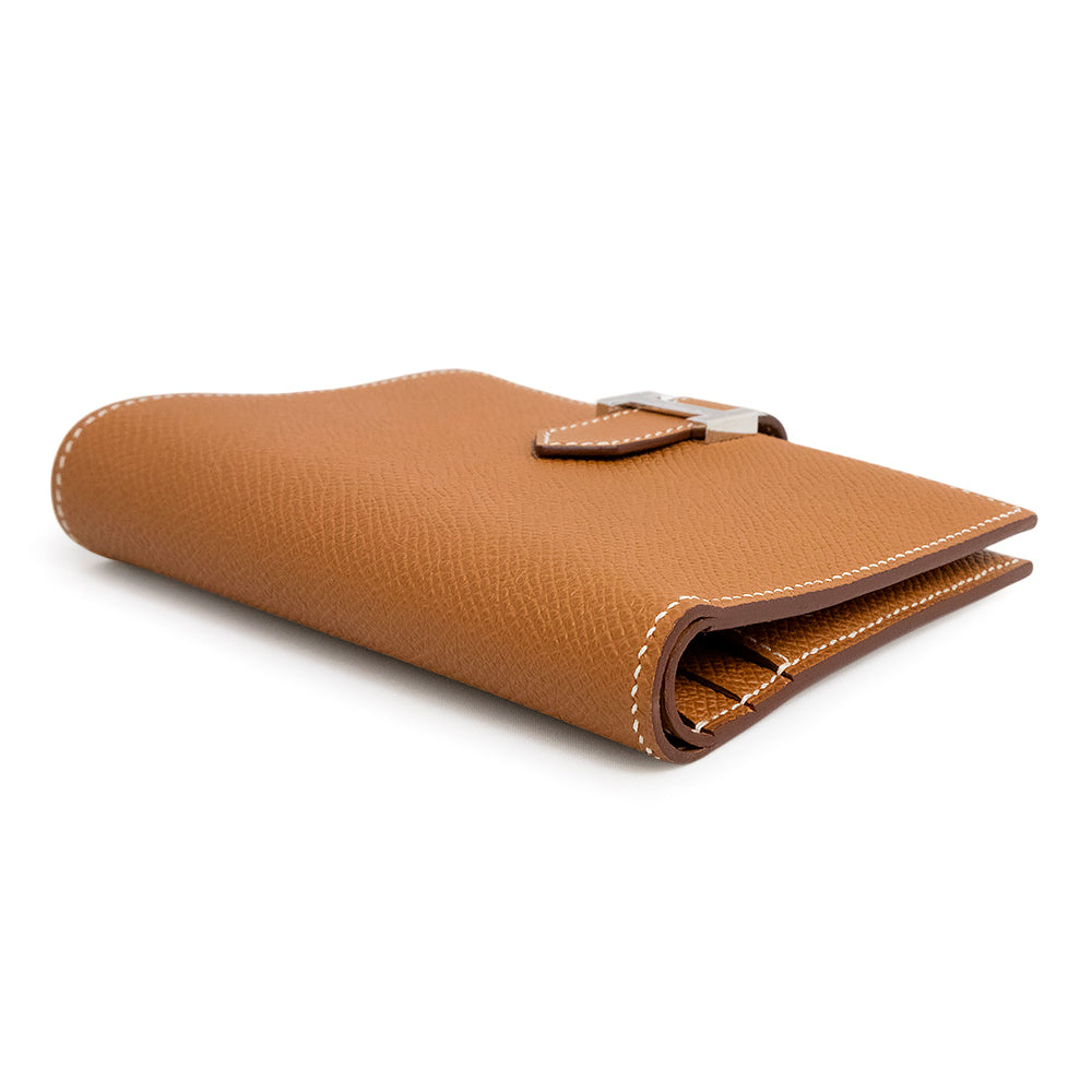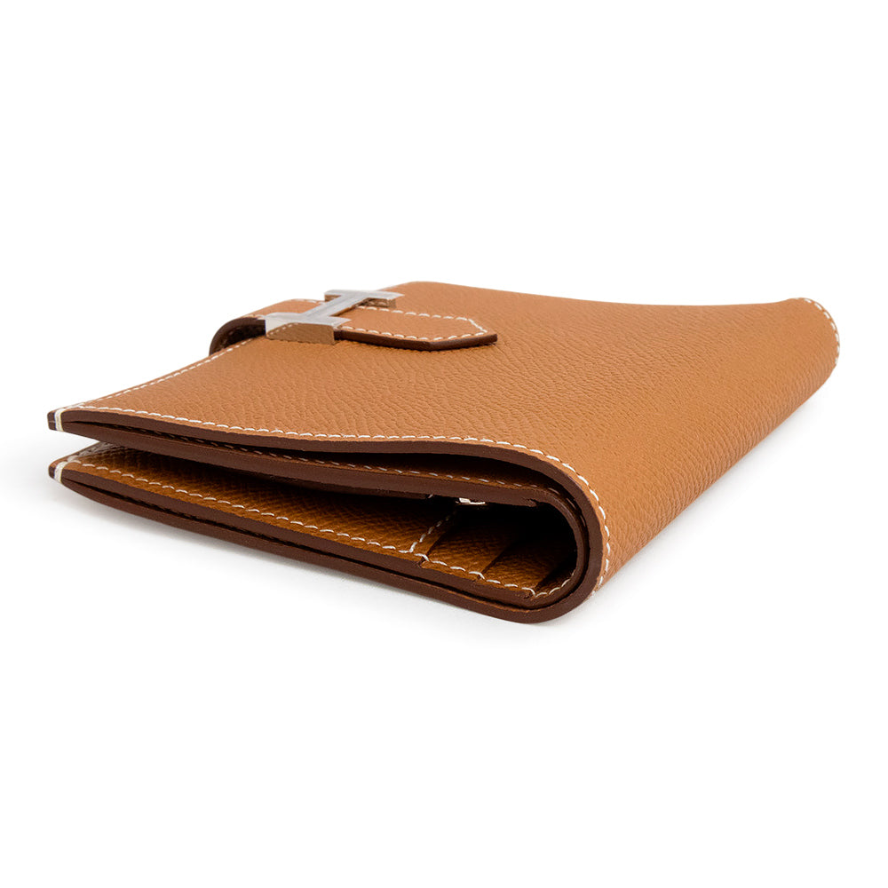【新品・未使用品】エルメス HERMES ベアン コンパクト 二つ折り財布 ヴォーエプソン レザー ゴールド ブラウン シルバー金具 B刻印 箱付
