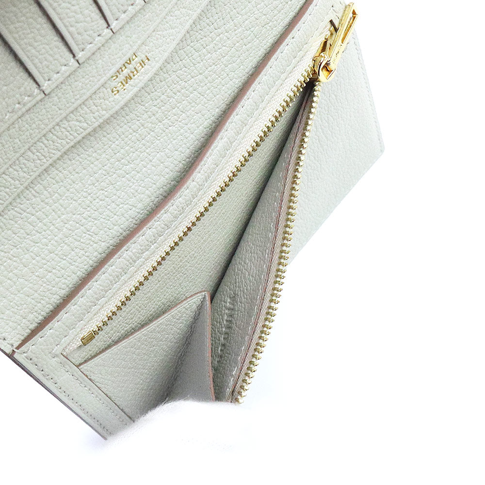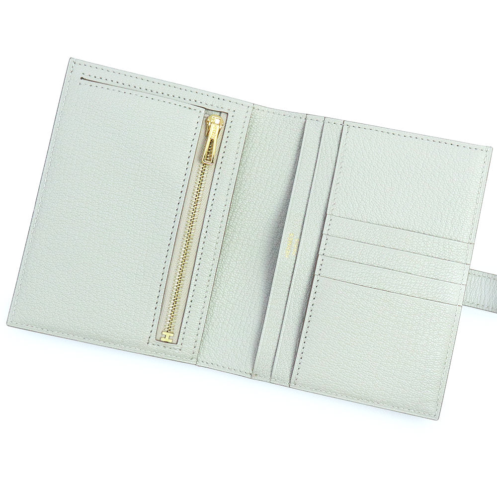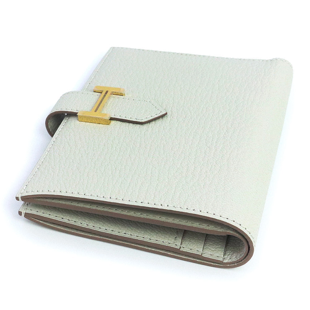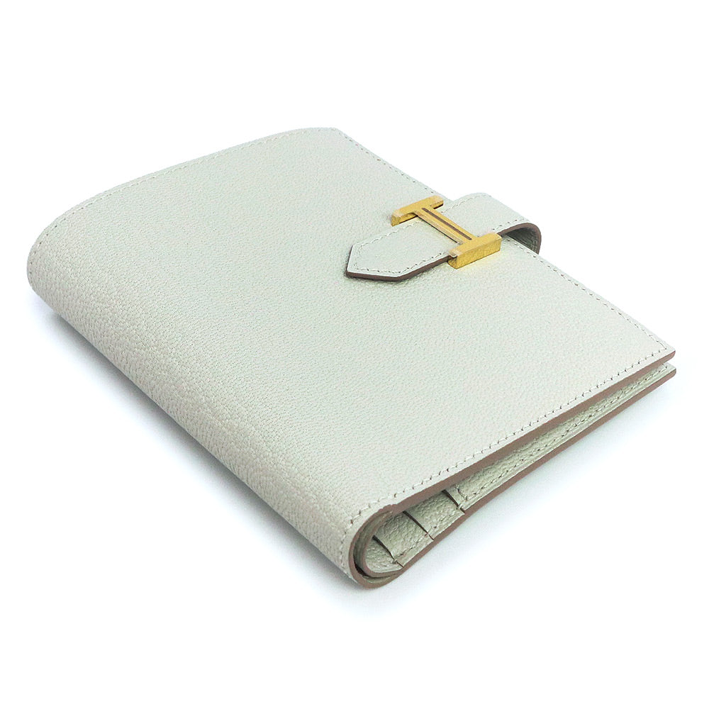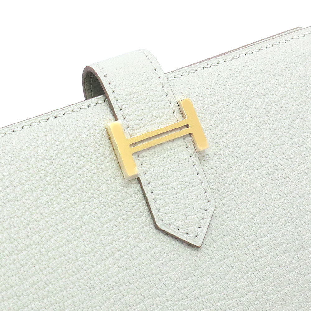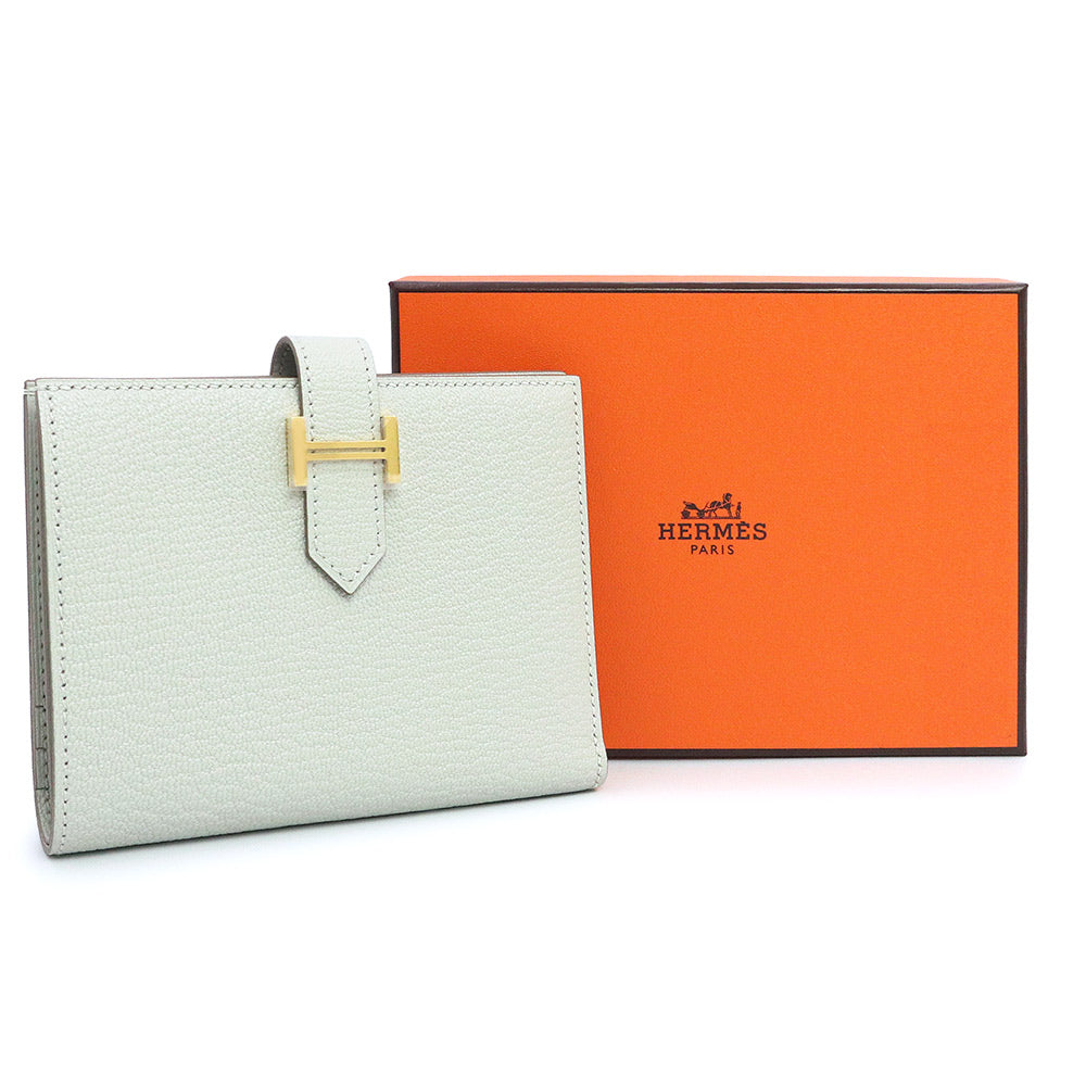 【新品・未使用品】エルメス HERMES ベアン コンパクト 二つ折り財布 シェブル シェーブルミゾール レザー ブルーペール グレー ゴールド金具 B刻印 箱付