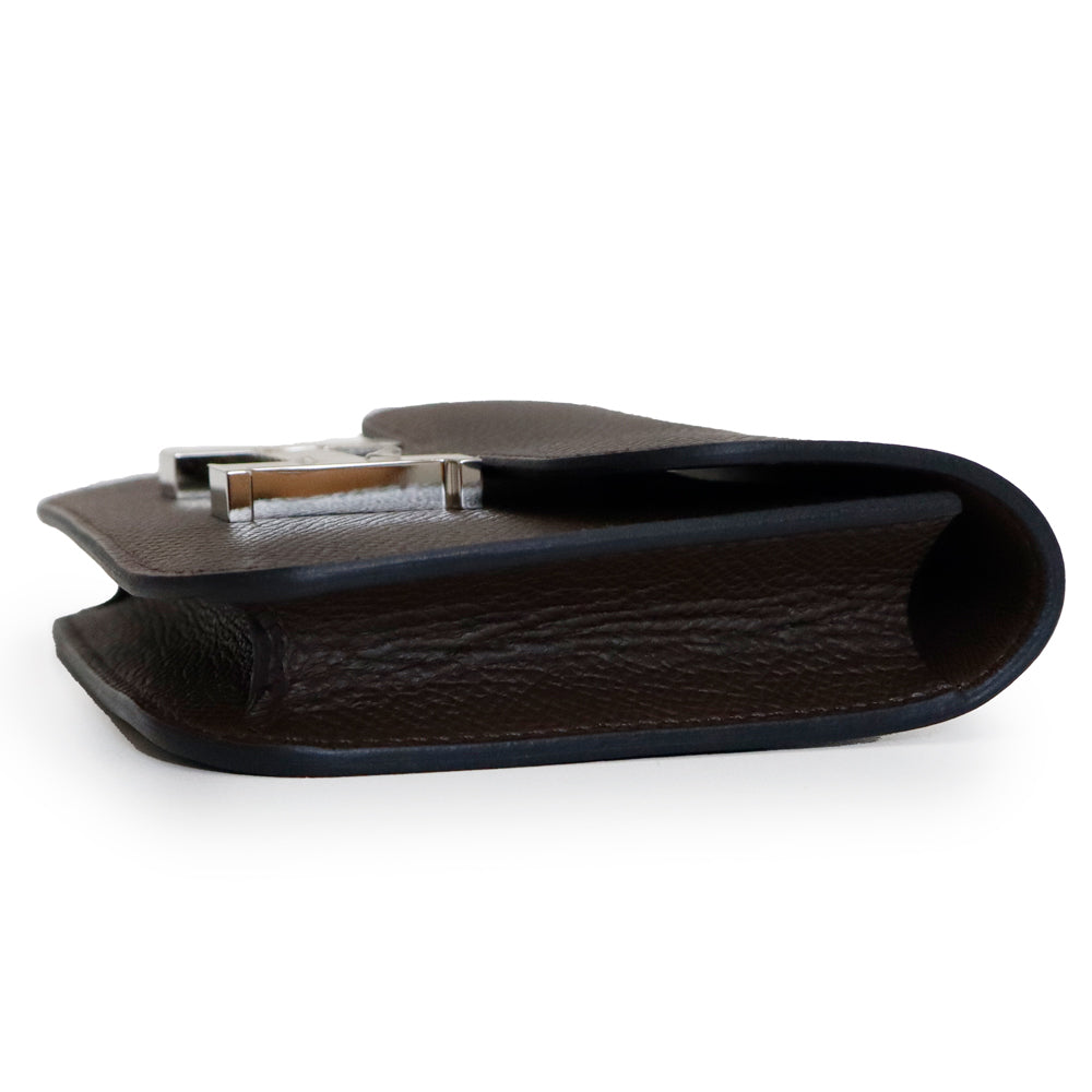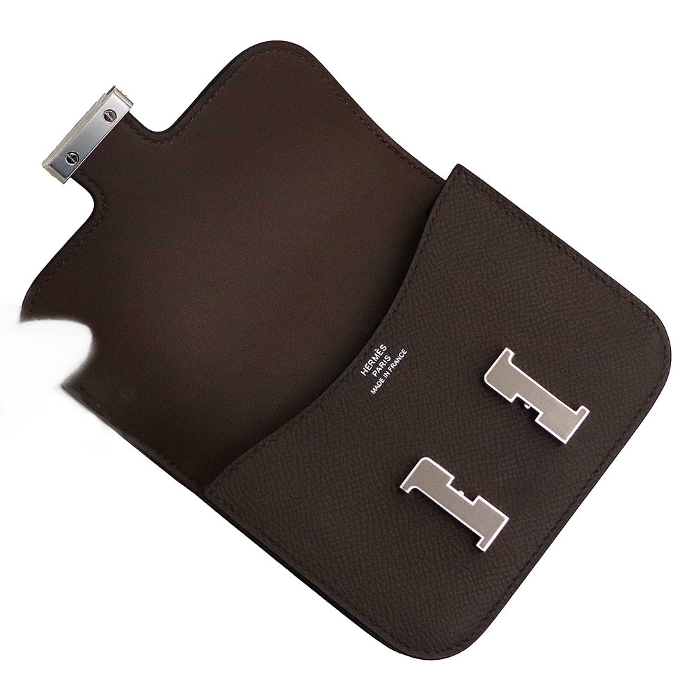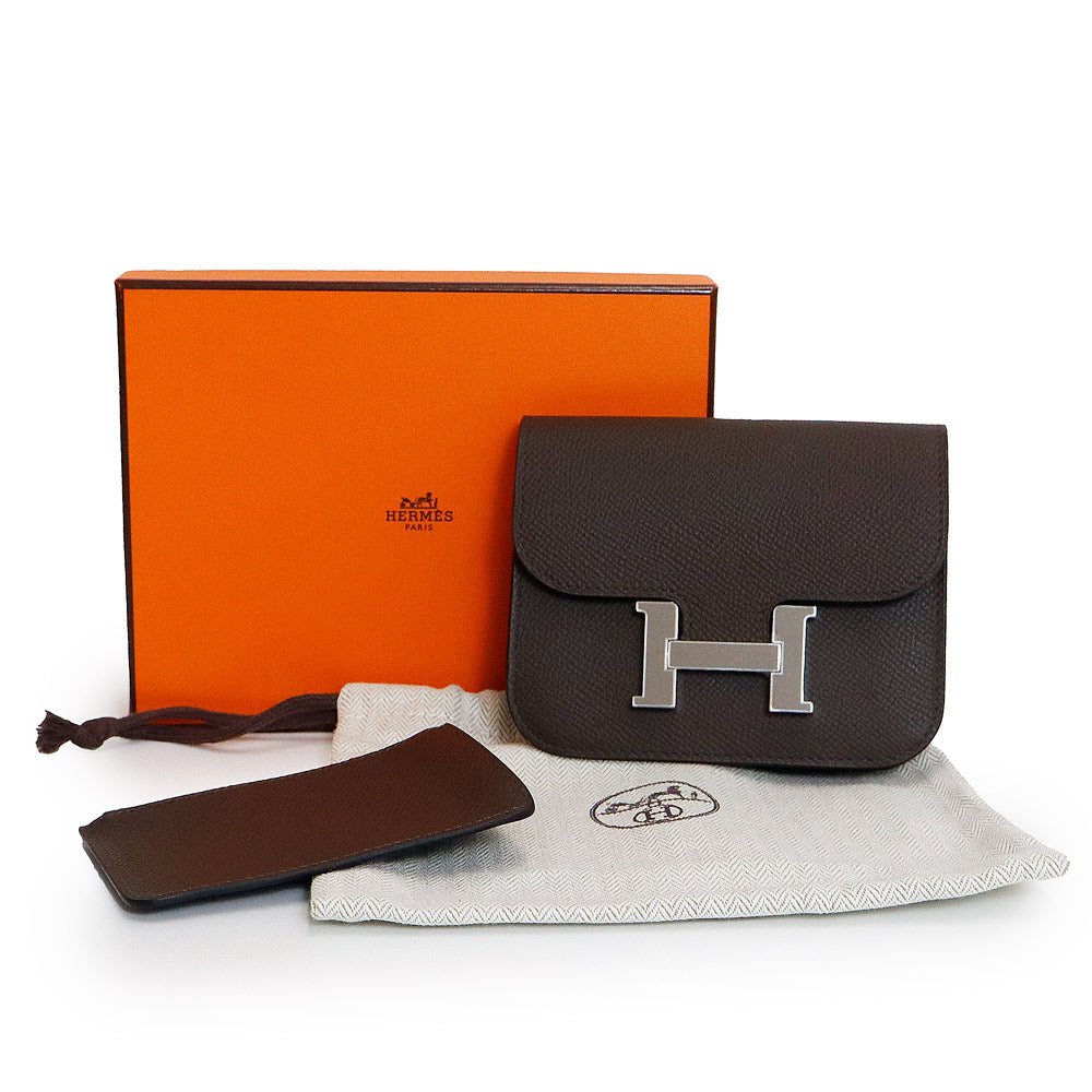 【新品・未使用品】エルメス HERMES コンスタンス スリム ポシェット ポーチ ウエストバッグ 二つ折り財布 ヴォーエプソン レザー Havane ハバナ ブラウン シルバー金具 B刻印 箱付