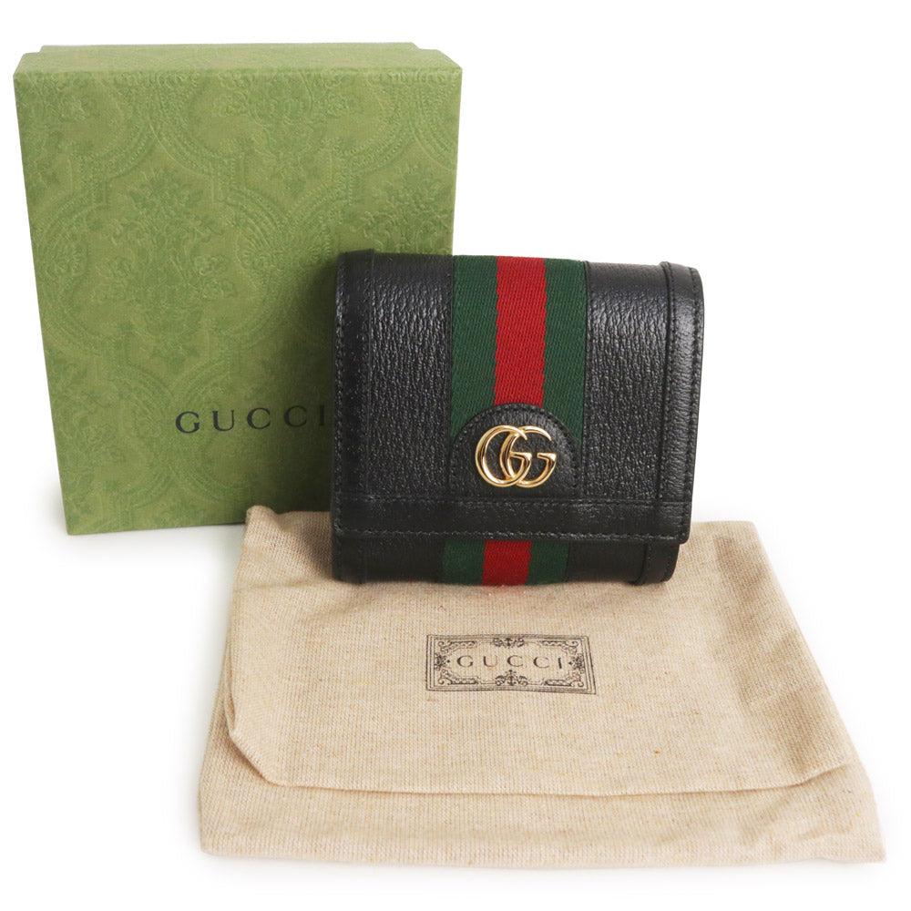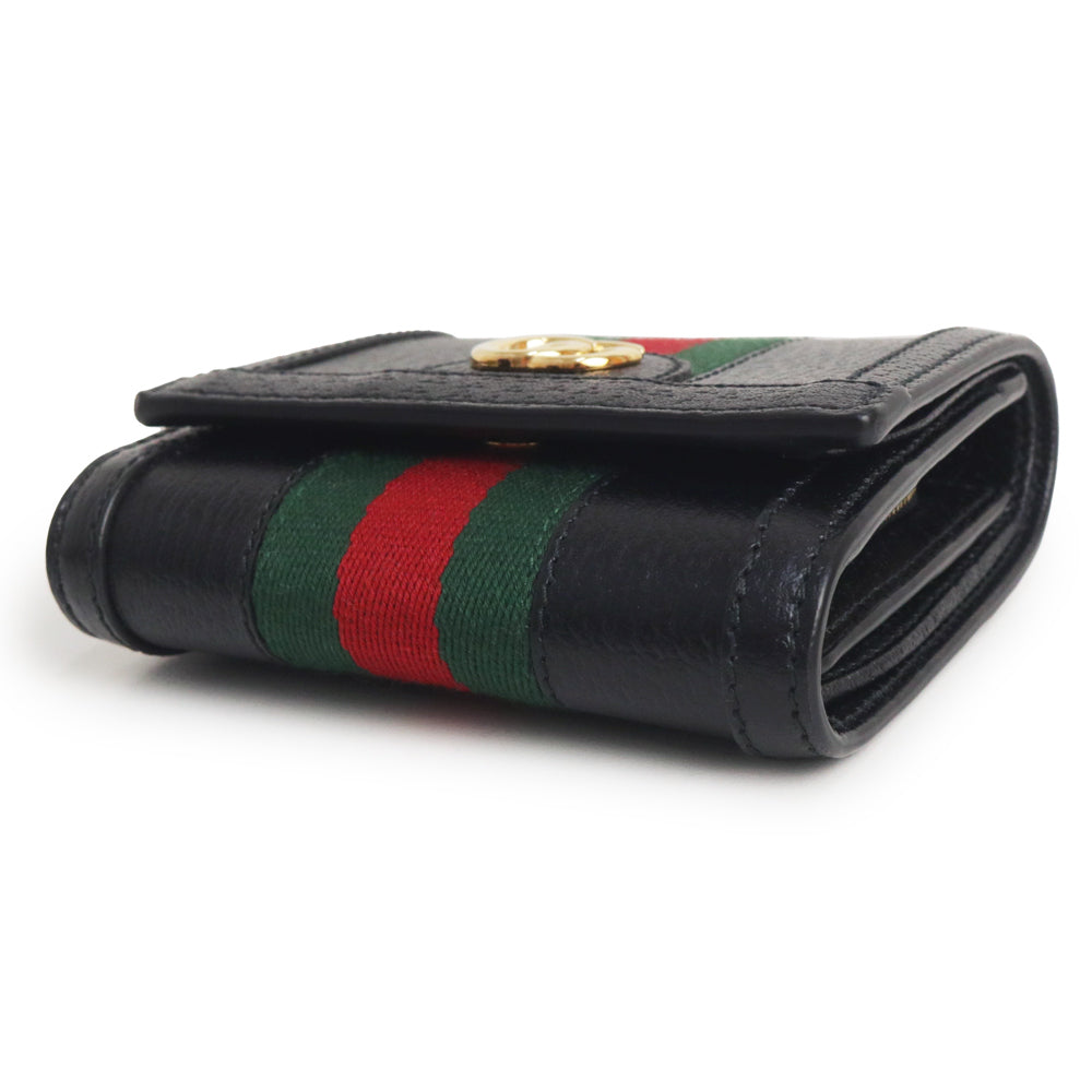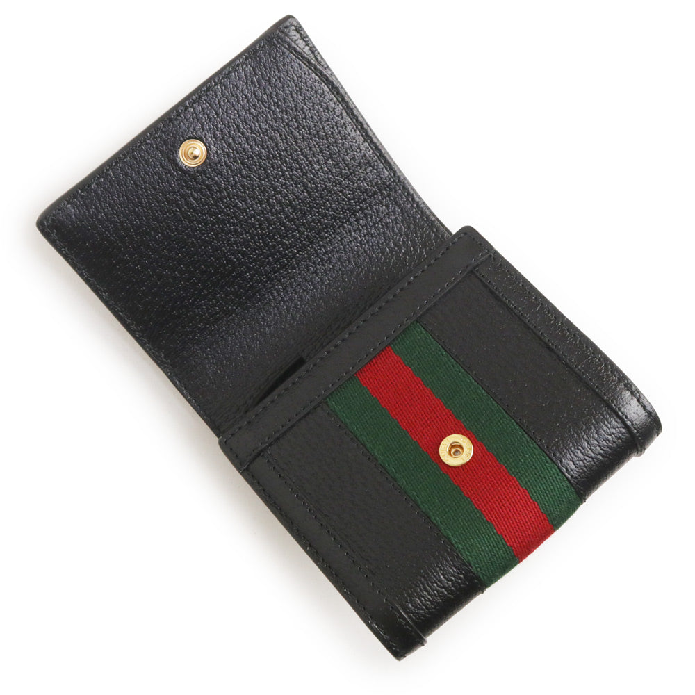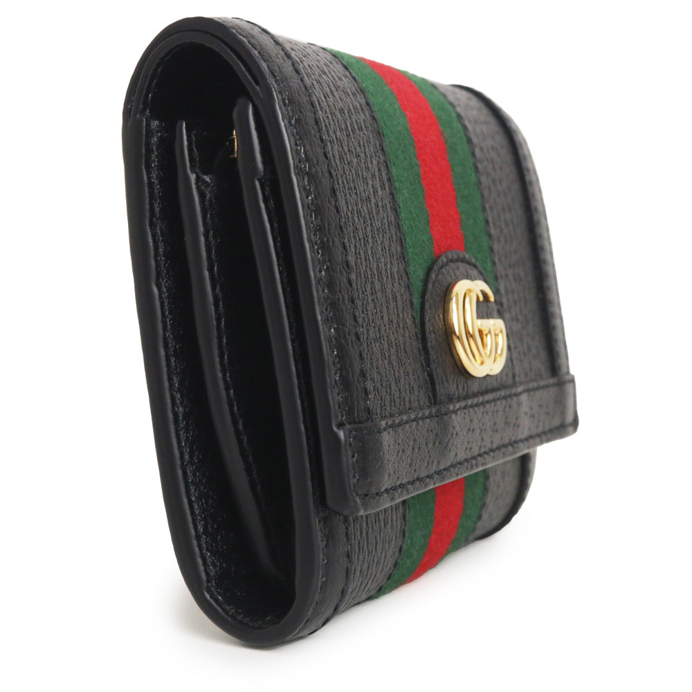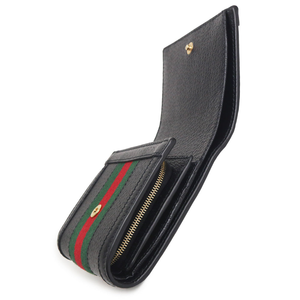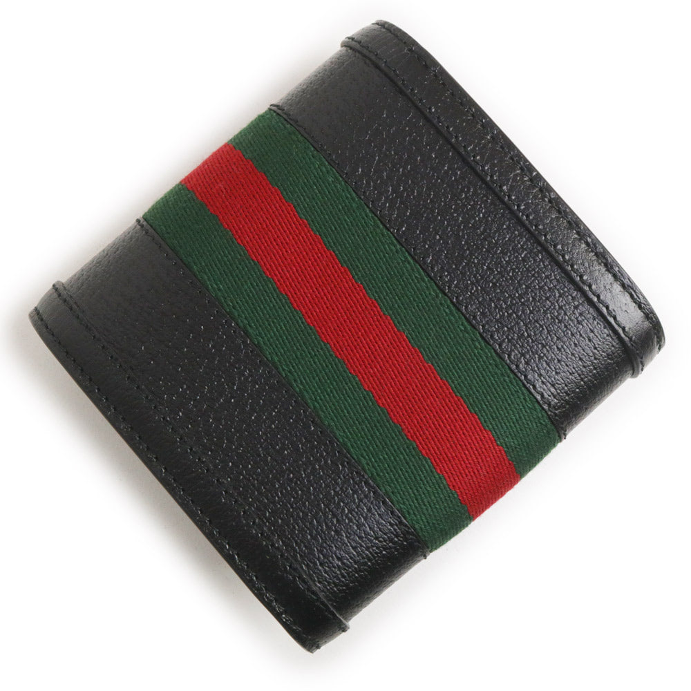 グッチのオフィディアライン、二つ折り財布。ウェブストライプとダブルGのモチーフが特徴的で、グッチオリジナルのソフトでしなやかなレザーを使用しており高級感も抜群です。 |