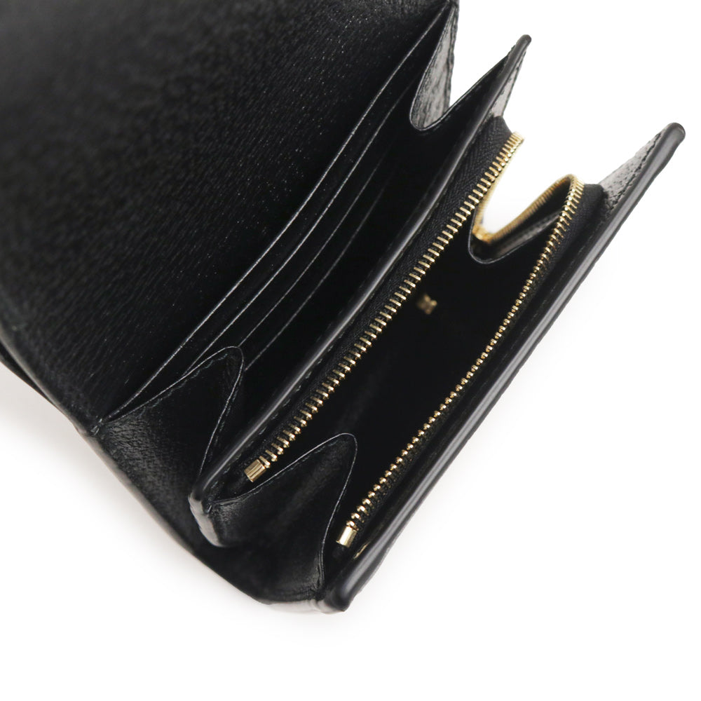 【新品・未使用品】グッチ GUCCI オフィディア ウェブ ストライプ GGマーモント 二つ折り財布 カーフスキン レザー ブラック ゴールド金具 719887 箱付
