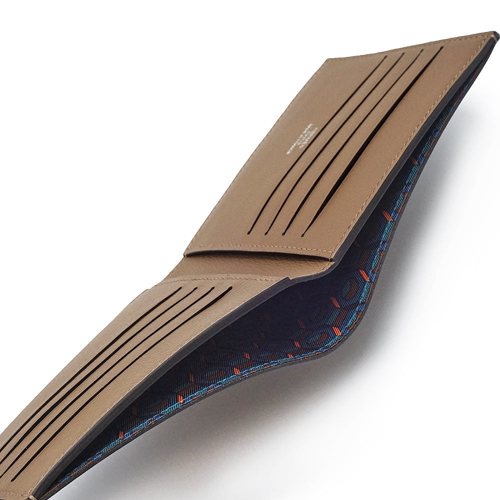 ヴォーエバーカラーのカーフスキンで作られたコンパクトなウォレット『シチズン・ツイル』。外側のレザーの質感と、内側のシルクの図柄が見事に融合しています。 気品あふれるモダンなお財布です。 |