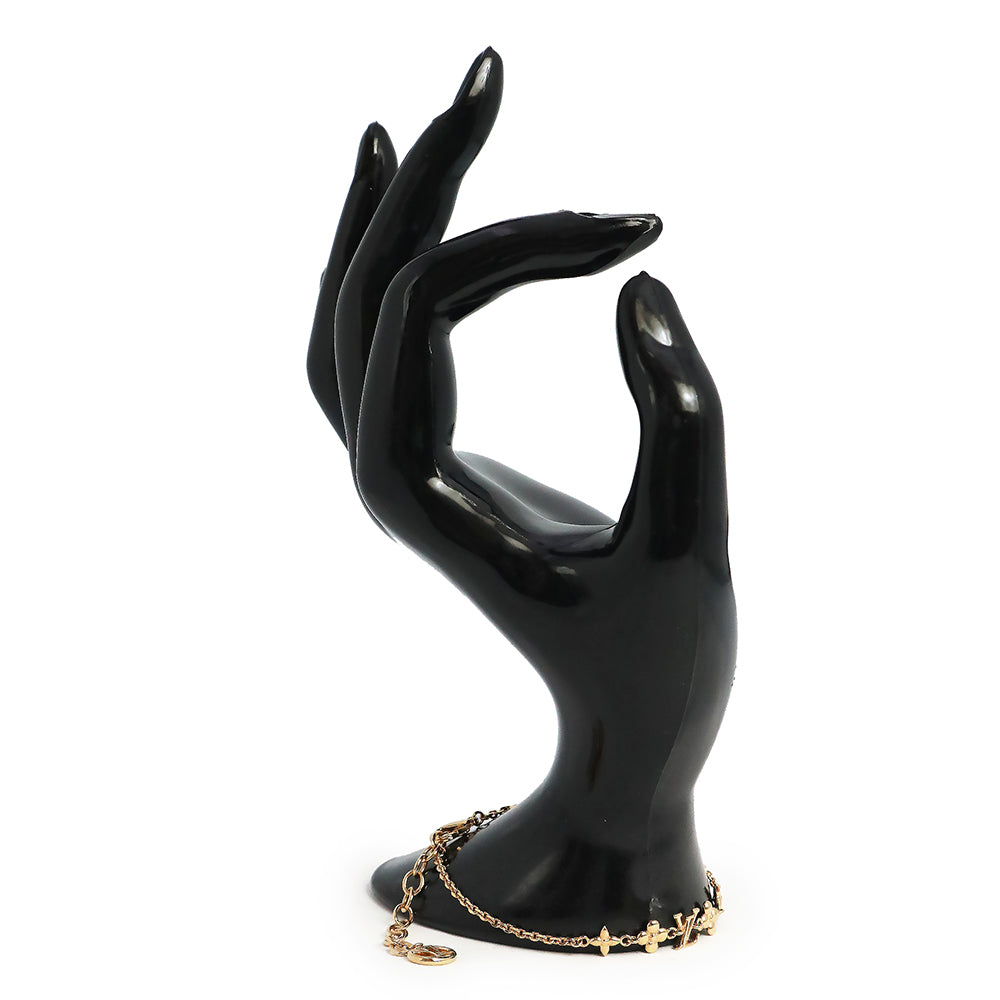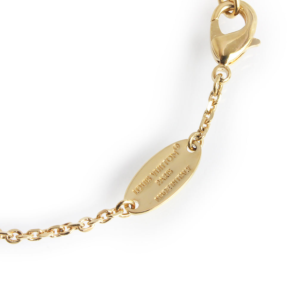 このベビー ルイ ブレスレットの魅力的なデザインは、メゾンの最も象徴的な要素の調和のとれた組み合わせを表しています。洗練されたゴールドのメタル チェーンに取り付けられた LV イニシャルと丁寧に作られたモノグラムの花が、最後のリンクの LV サークル チャームと共鳴します。 |