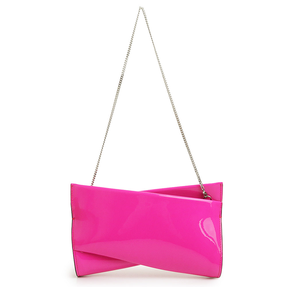 【未使用 展示品】Christian Louboutin クリスチャンルブタン 1235043 Loubitwist ルビットツイスト スモール パテントレザー Bolerose ボレローズ ピンク 2way チェーン ショルダー クラッチバッグ セカンド シルバー金具
