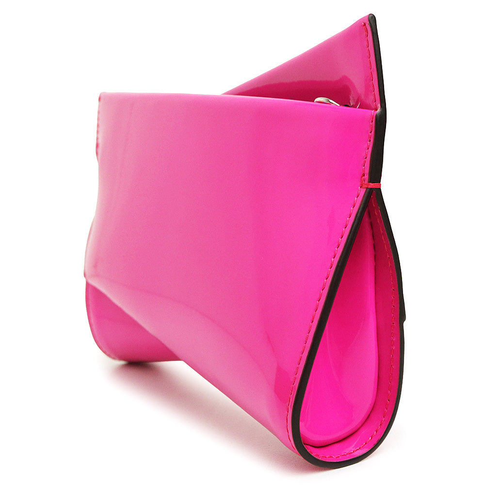 ひねりを加えた独創的なフォルムが目を引く、クリスチャン ルブタンの「ルビットツイスト」クラッチバッグ。 艶やかなパテントレザーが放つ光沢は、どんな装いにもエレガントな雰囲気をプラス。付属のチェーンストラップを取り付ければショルダーバッグとして使用でき、パーティーからデイリーまで、スタイルに合わせて楽しめます。 |