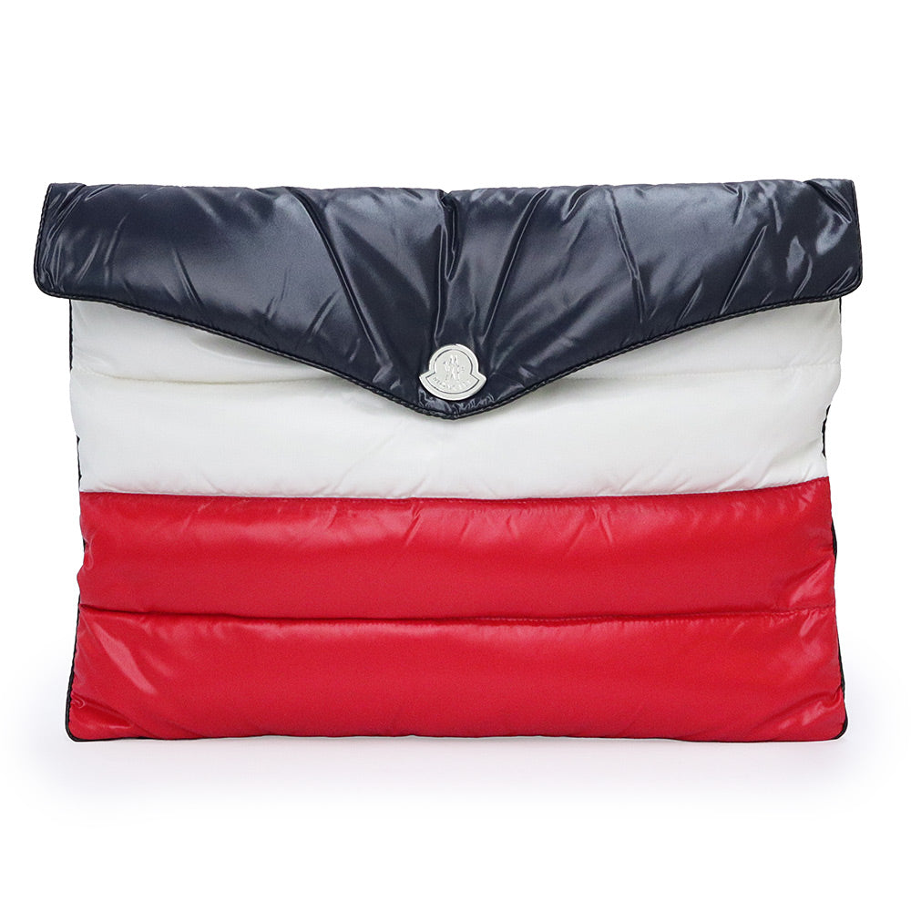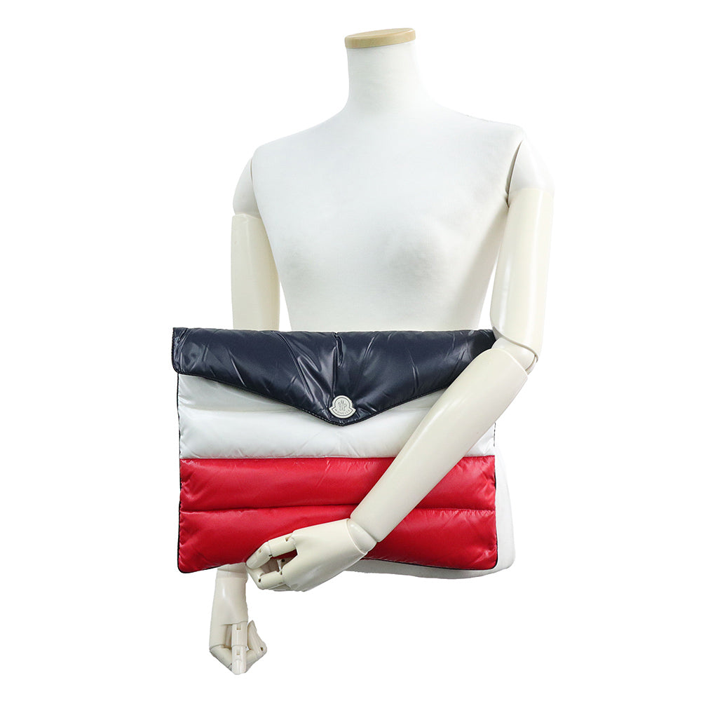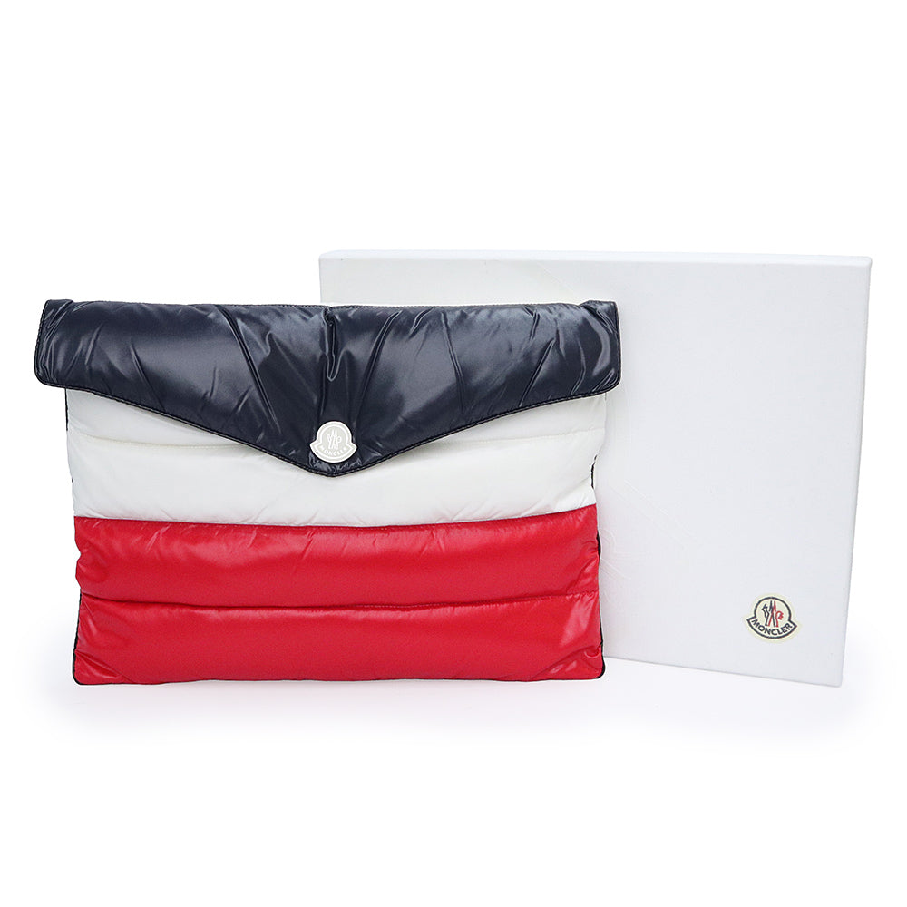 【新品・未使用品】MONCLER モンクレール D209P0081185 トリコロール ナイロン ダウン フェザー ネイビー ホワイト レッド セカンド クラッチバッグ シルバー金具
