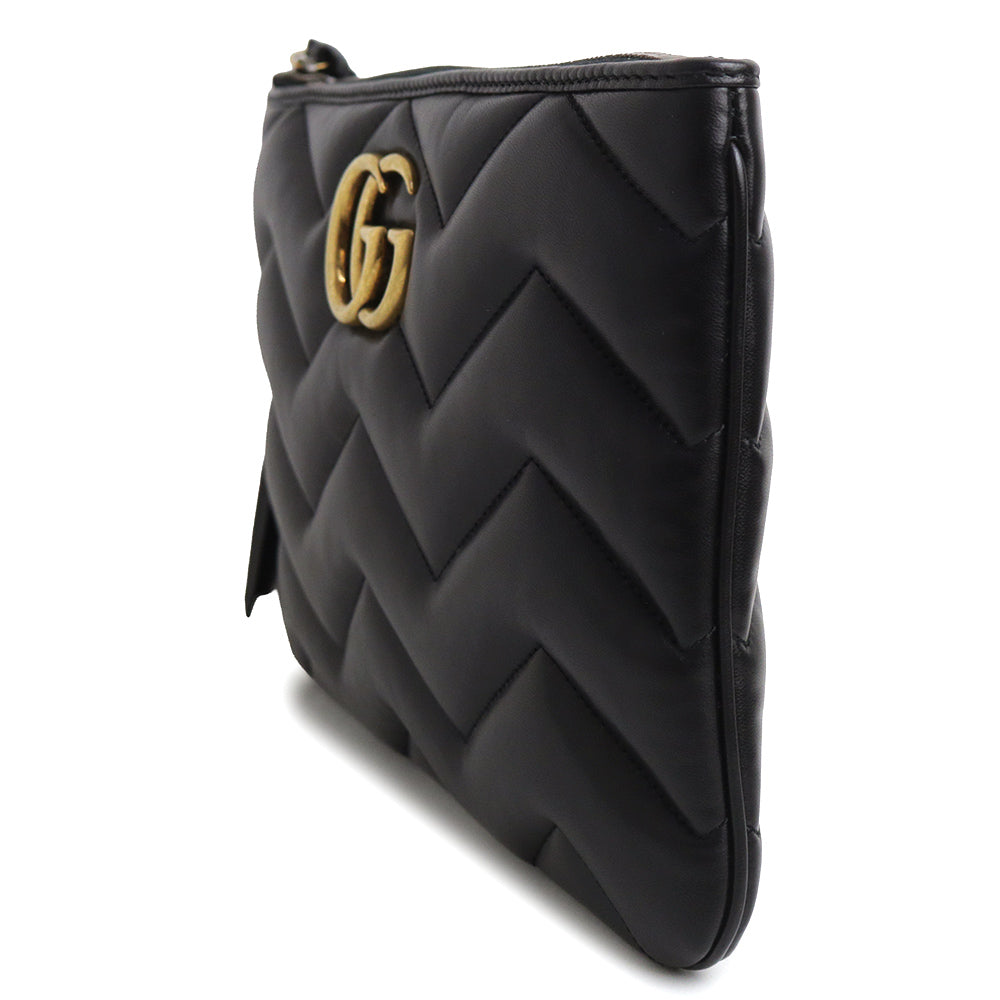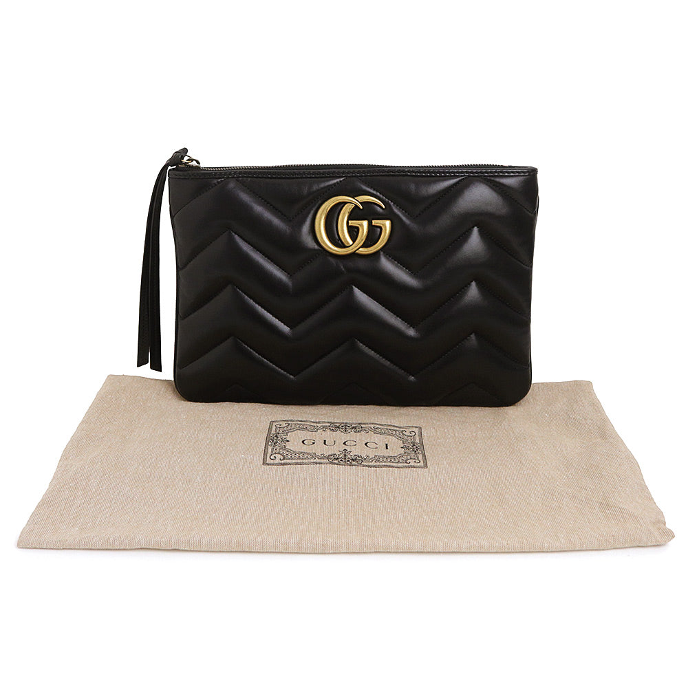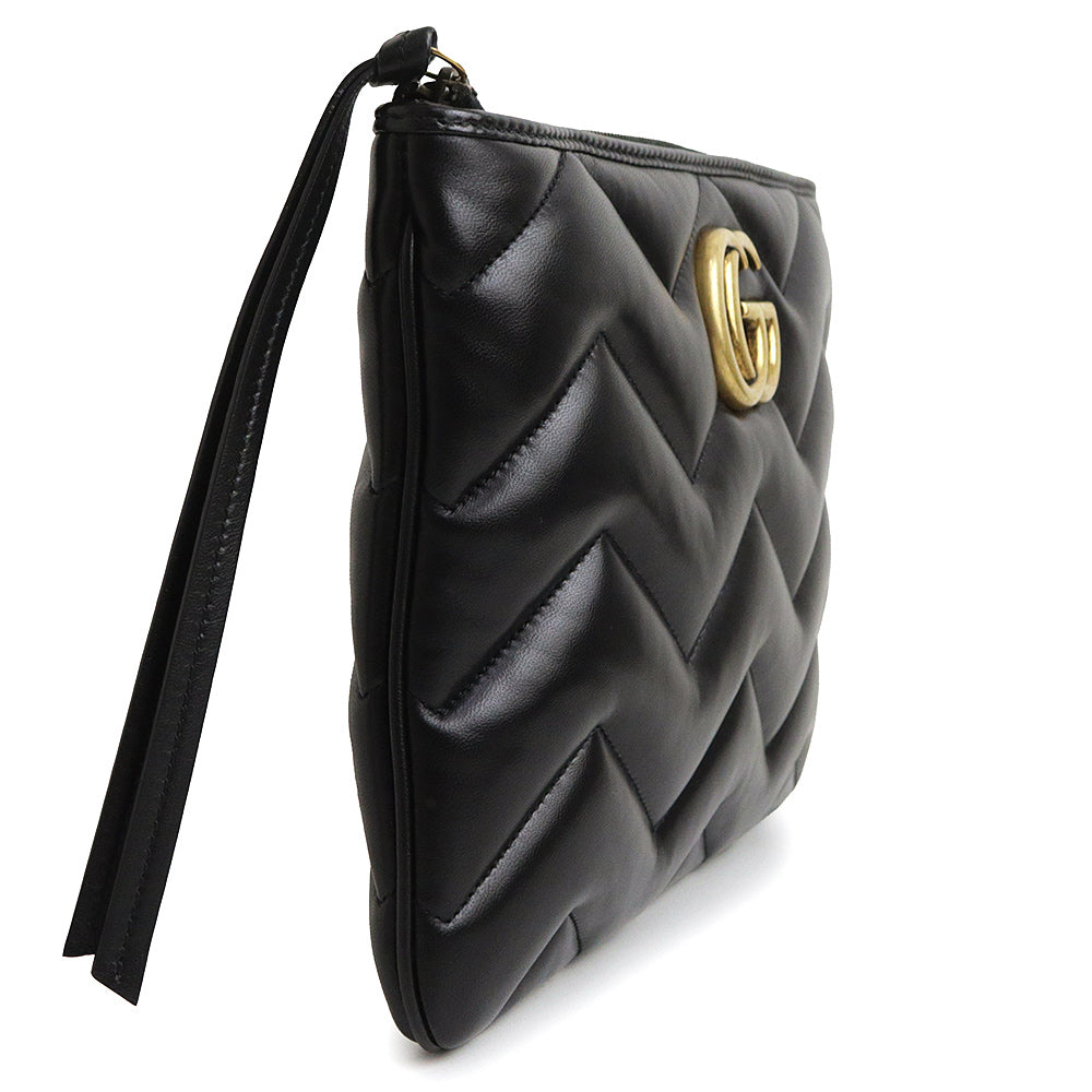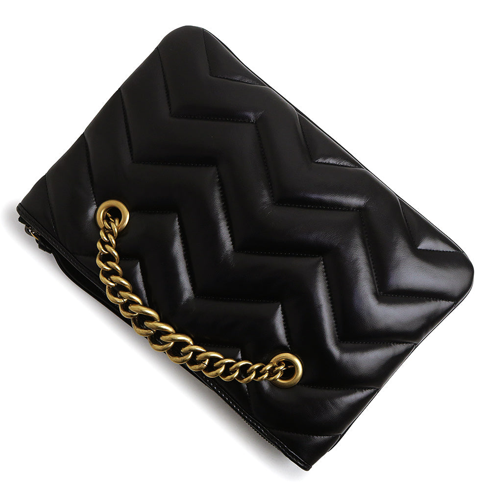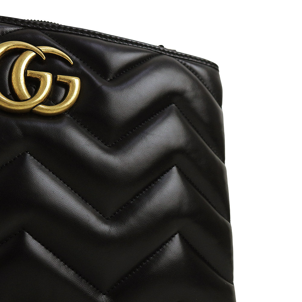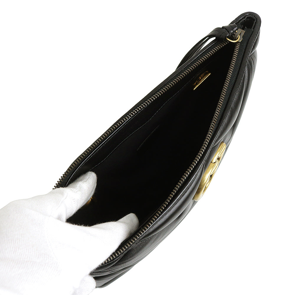 【未使用 展示品】グッチ GUCCI GGマーモント チェーン クラッチバッグ セカンド シェブロンレザー ブラック アンティークゴールド金具 777255