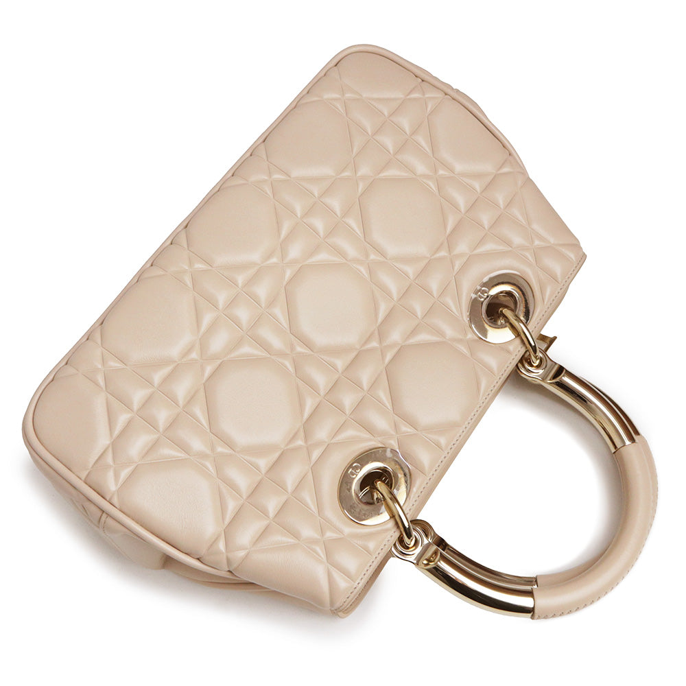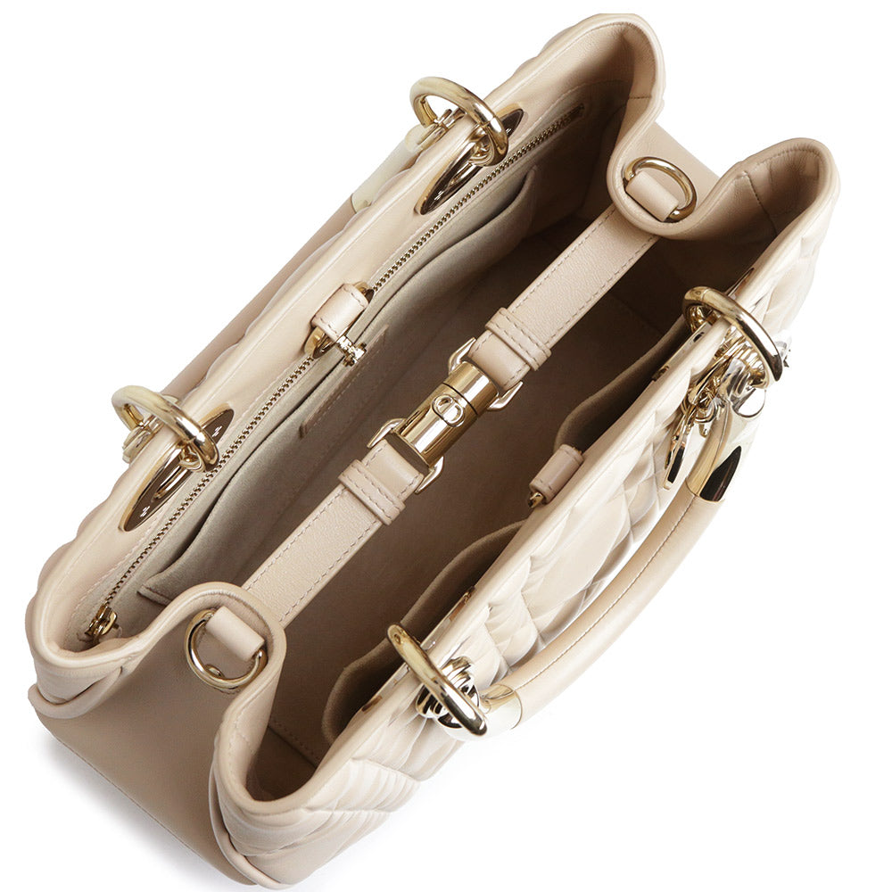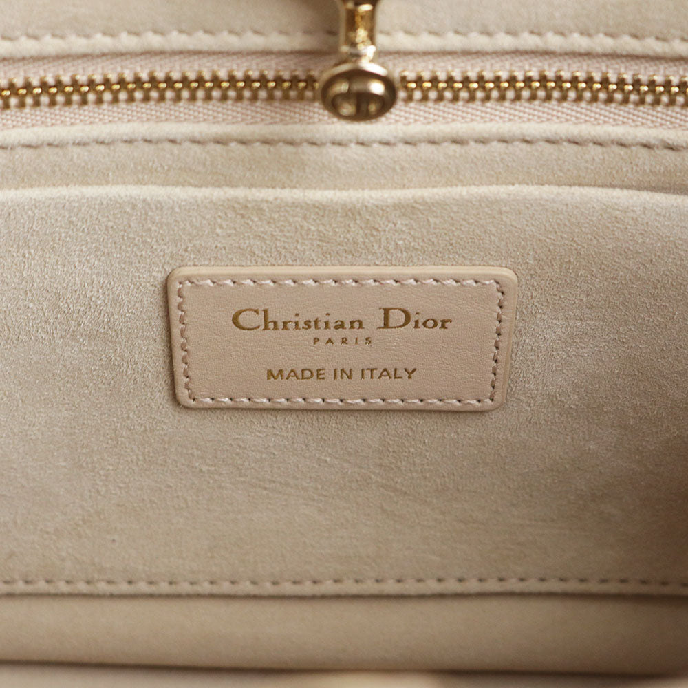 【美品】クリスチャンディオール Christian Dior レディ 95.22 ミディアム 2way ショルダー ハンドバッグ 斜め掛け カナージュ カーフスキン ベージュ ペールゴールド金具 M0699OVJX