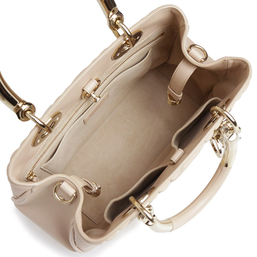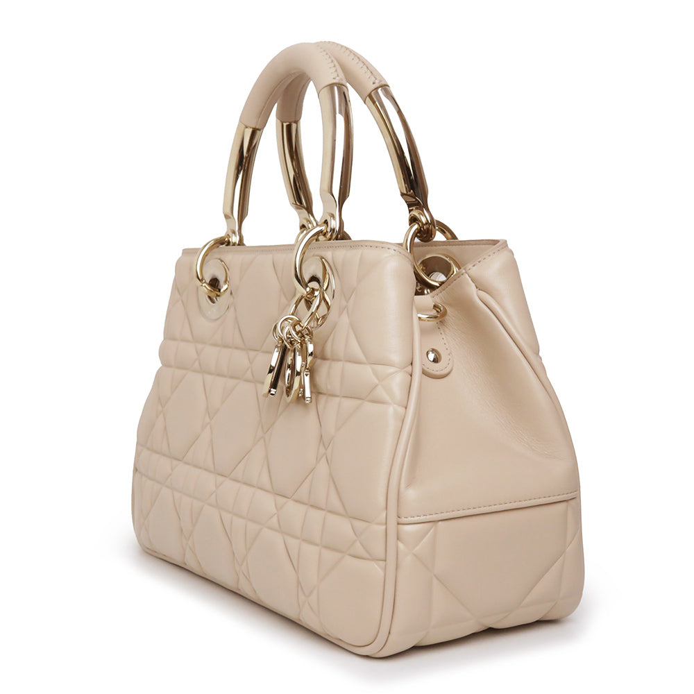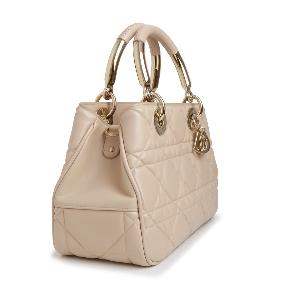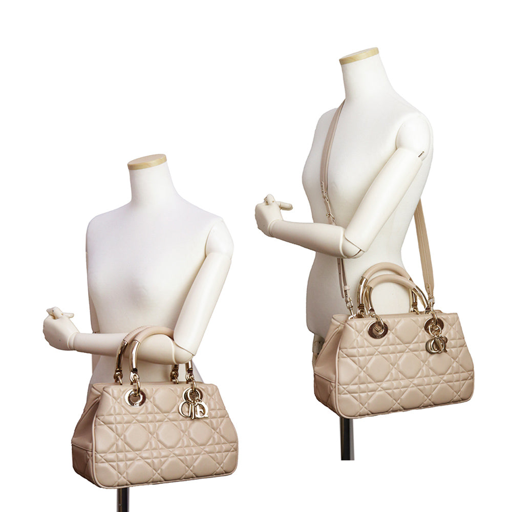【美品】クリスチャンディオール Christian Dior レディ 95.22 ミディアム 2way ショルダー ハンドバッグ 斜め掛け カナージュ カーフスキン ベージュ ペールゴールド金具 M0699OVJX