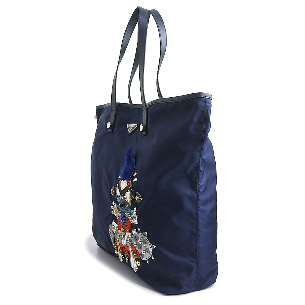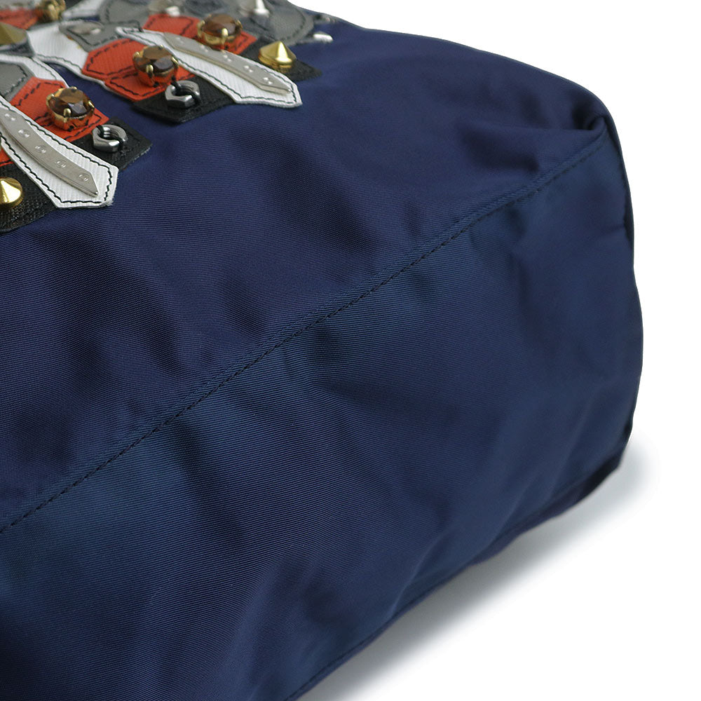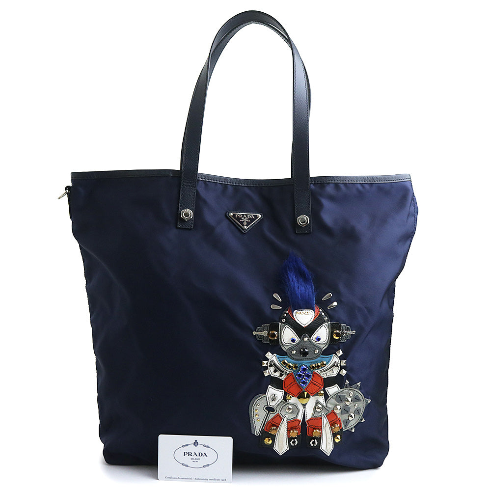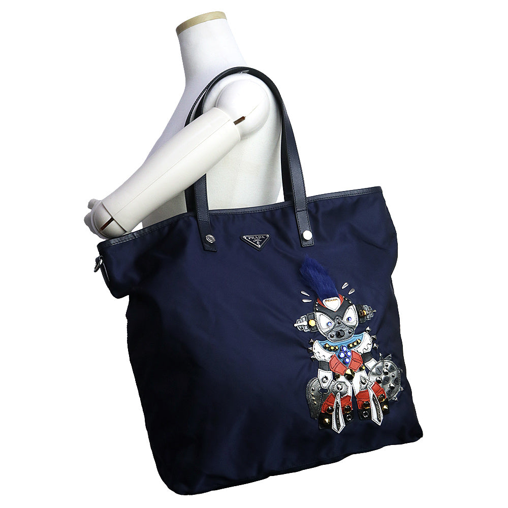 【美品】PRADA プラダ B4605R ロボットモチーフ ヴァーティカル トライアングル 三角ロゴプレート TESSUTO TATTOO ナイロン BALTICO バルティコ ネイビー トートバッグ シルバー金具