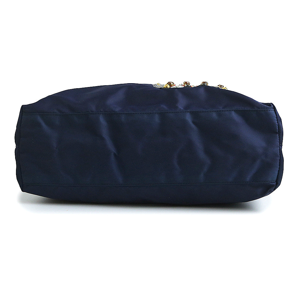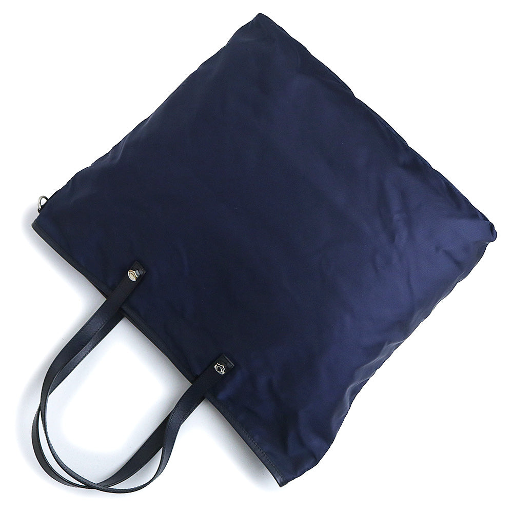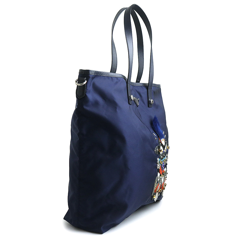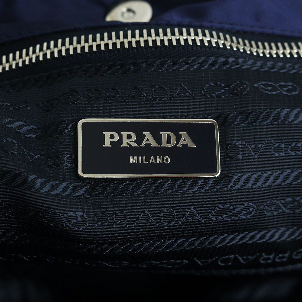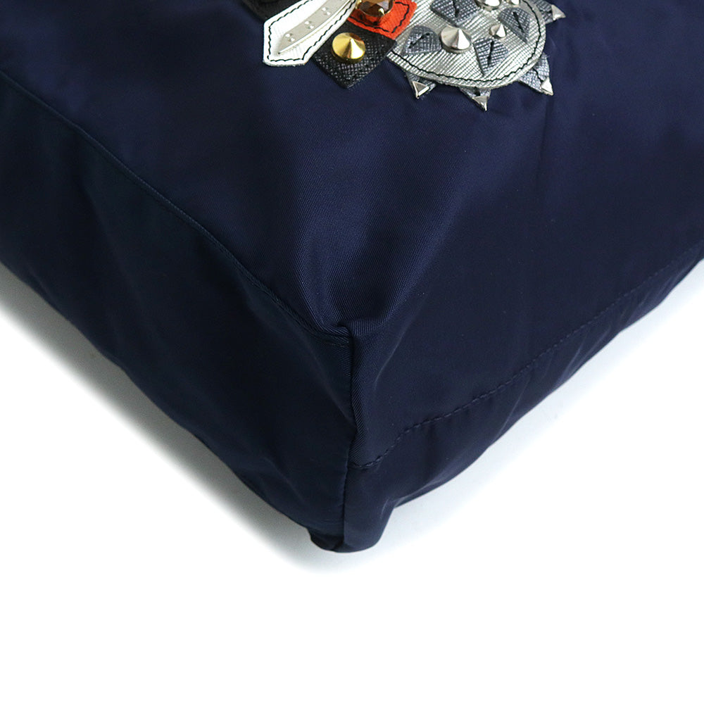 【美品】PRADA プラダ B4605R ロボットモチーフ ヴァーティカル トライアングル 三角ロゴプレート TESSUTO TATTOO ナイロン BALTICO バルティコ ネイビー トートバッグ シルバー金具