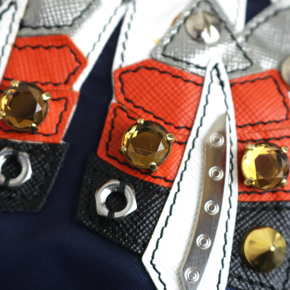 軽量なナイロン素材に立体的で遊び心溢れるロボットをあしらった、プラダのトートバッグ。深みのあるネイビーがカジュアルながらも高級感のある大人の遊び心を演出。肩掛け可能なハンドルと、A4サイズも収まる収納力を兼ね備え、デイリーからお出かけまで幅広く活躍します。 |