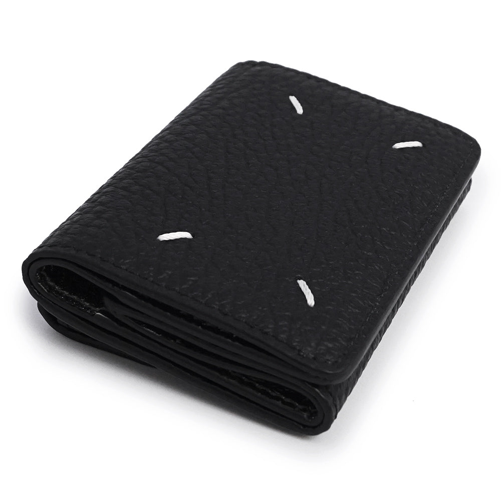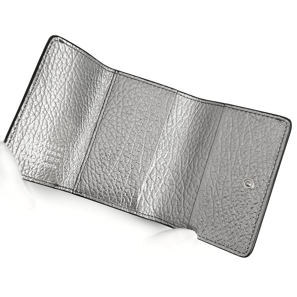 【新品・未使用品】Maison Margiela メゾン マルジェラ S36UI0416 4ステッチ トリフォールド カーフスキン ブラック メタリックシルバー 三つ折り財布 レザー シルバー金具