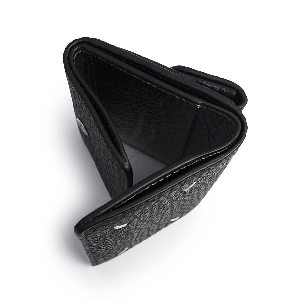 封筒のようなデザインの小銭入れがアクセントになった、三つ折りタイプのミニウォレット。内側には"カレンダーロゴ、フロントフラップにあしらわれた4ステッチがアイコニックにその存在を主張しています。