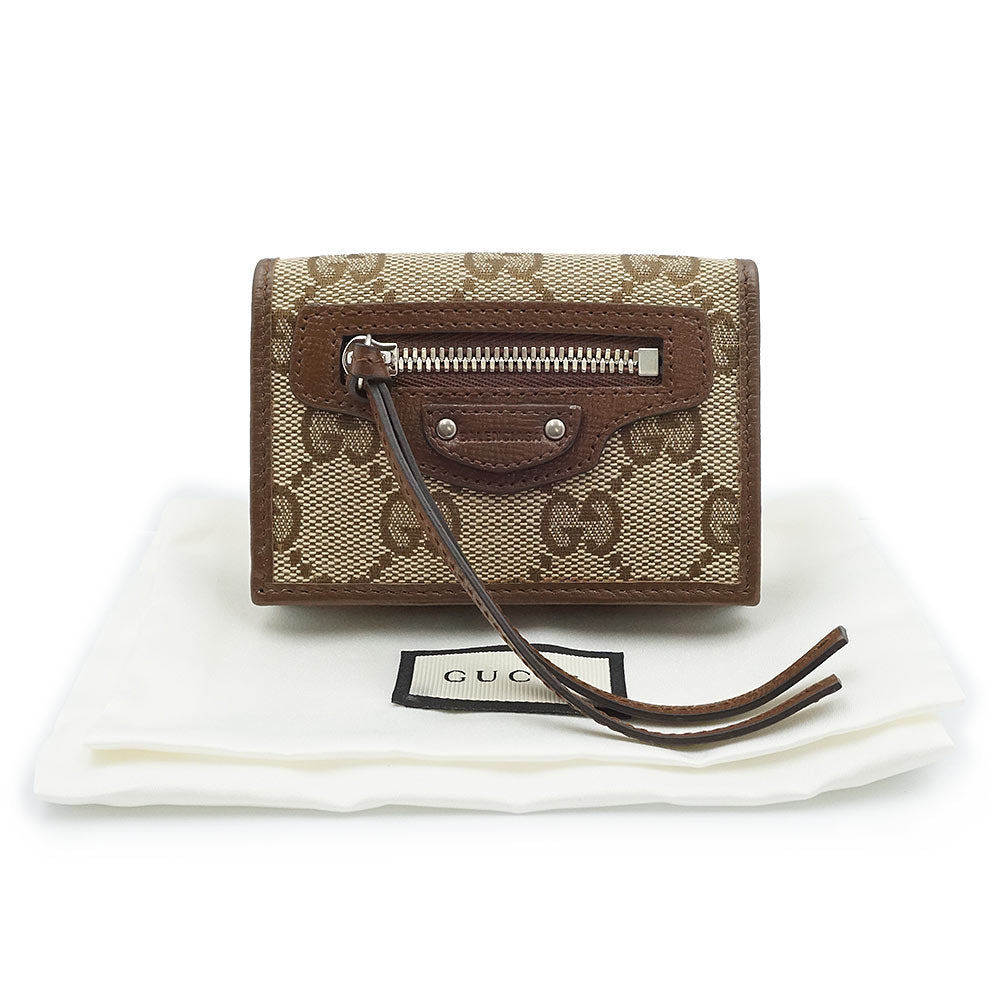 【新品・未使用品】GUCCI グッチ BALENCIAGA バレンシアガ コラボ 681708 ザ ハッカー プロジェクト ネオ クラシック ウォレット GGキャンバス レザー ベージュ エボニー ブラウン コンパクト 三つ折り財布 シルバー金具