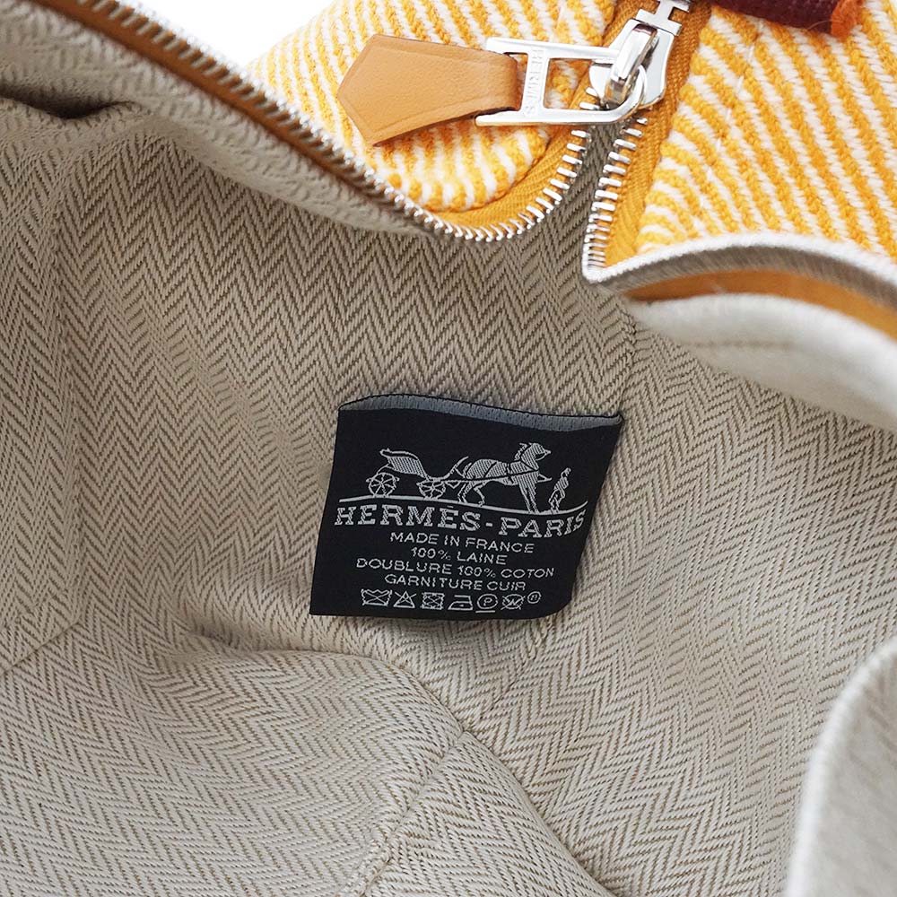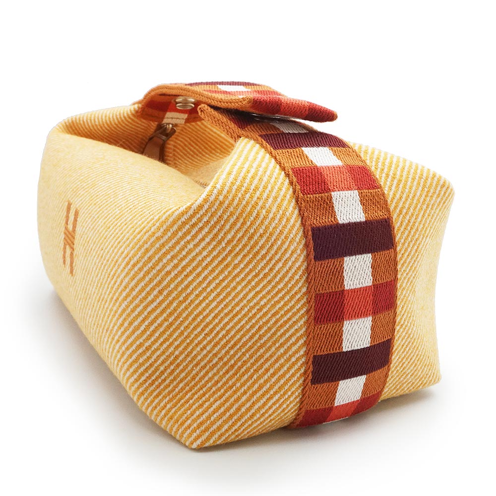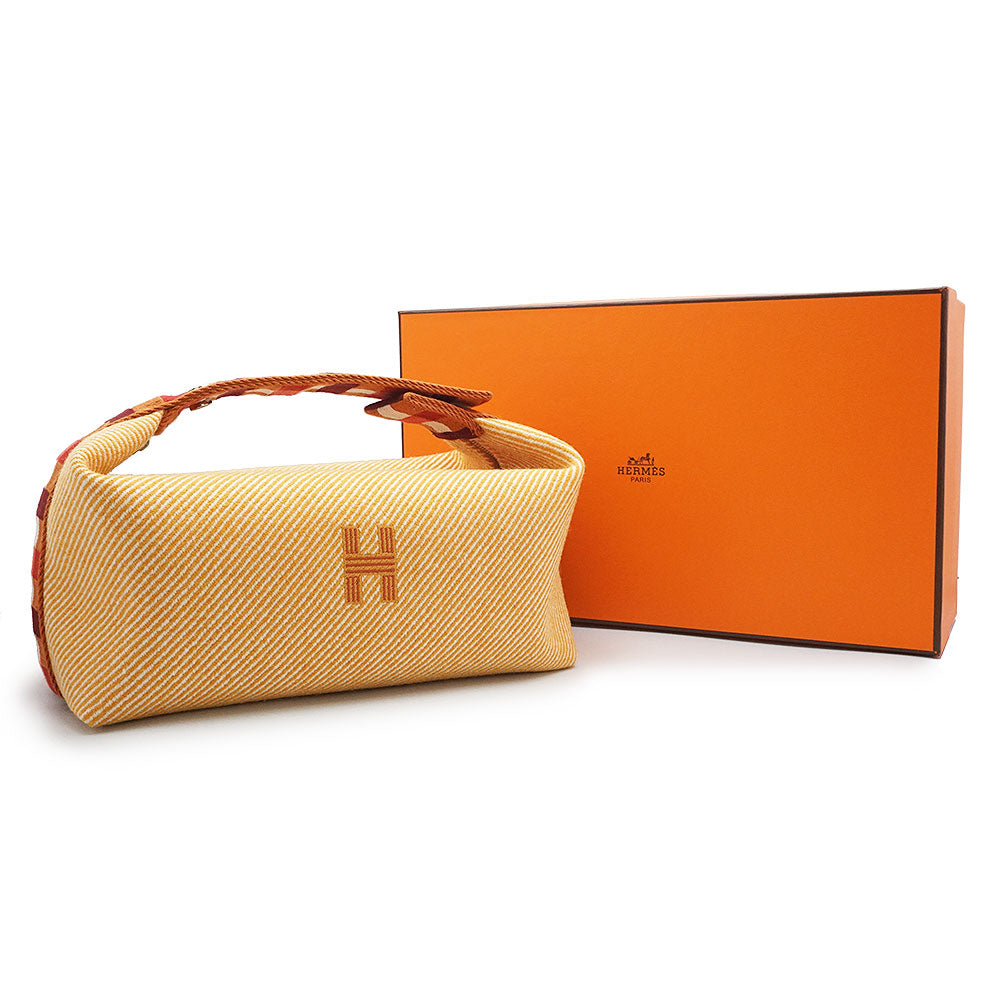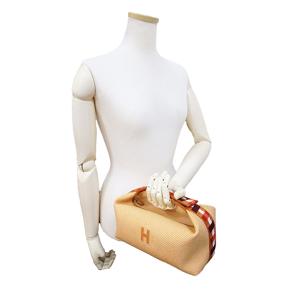【新品・未使用品】エルメス HERMES ブリッド ア ブラック PM オ カレ バニティ ポーチ セカンド ハンドバッグ ウール コットン フォーヴ オレンジ イエロー シルバー金具 箱付