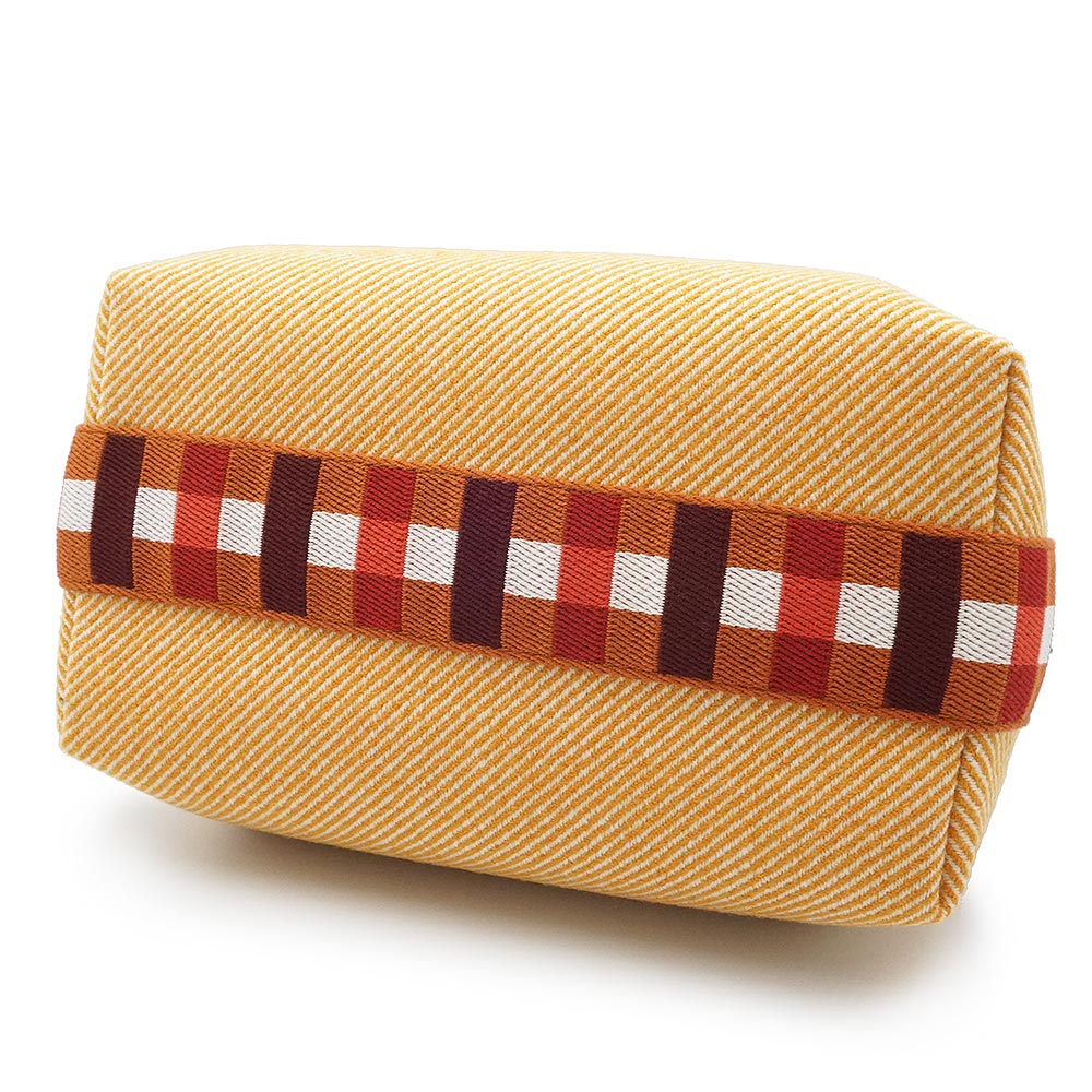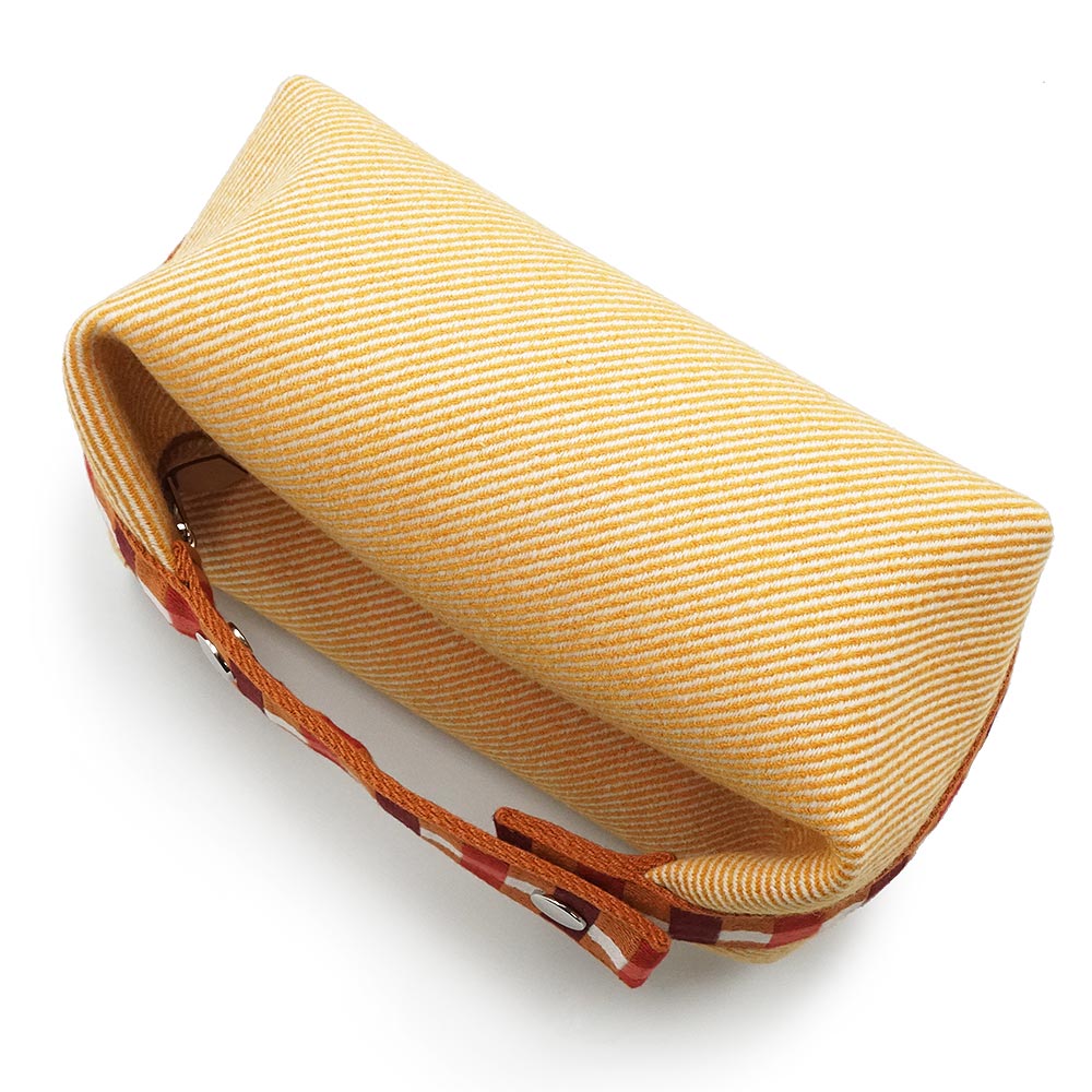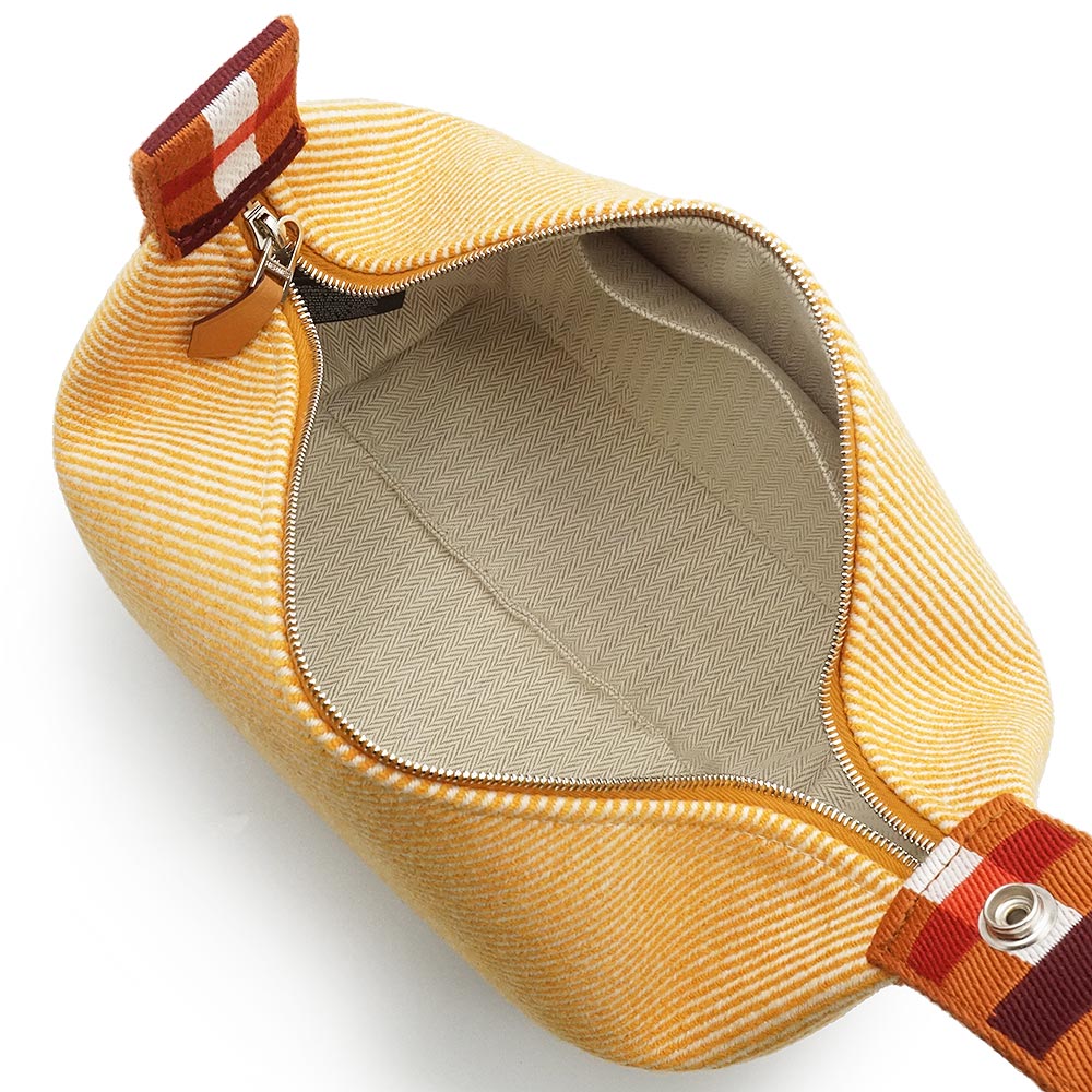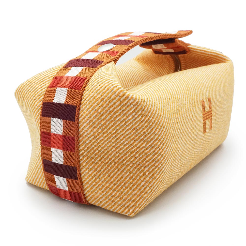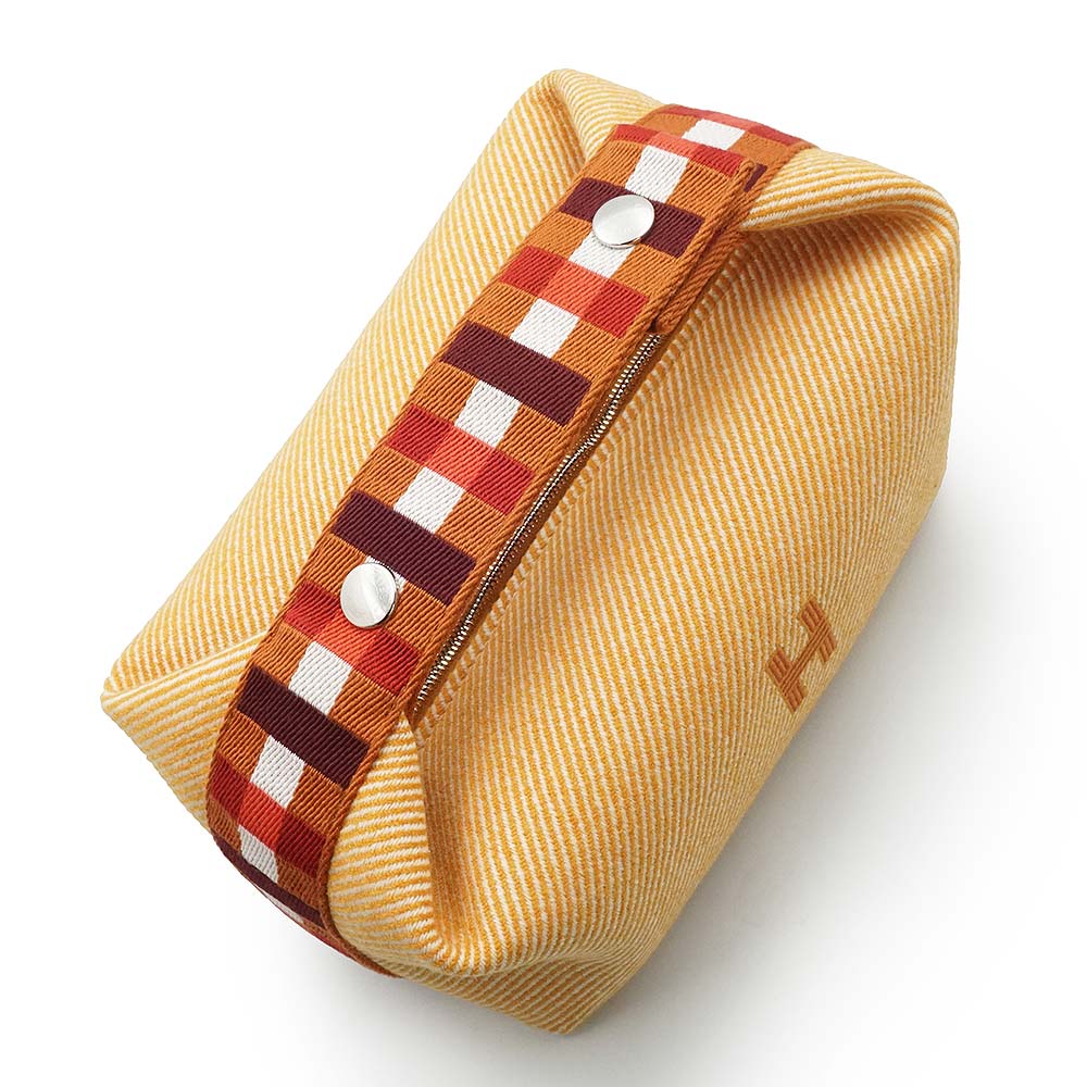 【新品・未使用品】エルメス HERMES ブリッド ア ブラック PM オ カレ バニティ ポーチ セカンド ハンドバッグ ウール コットン フォーヴ オレンジ イエロー シルバー金具 箱付