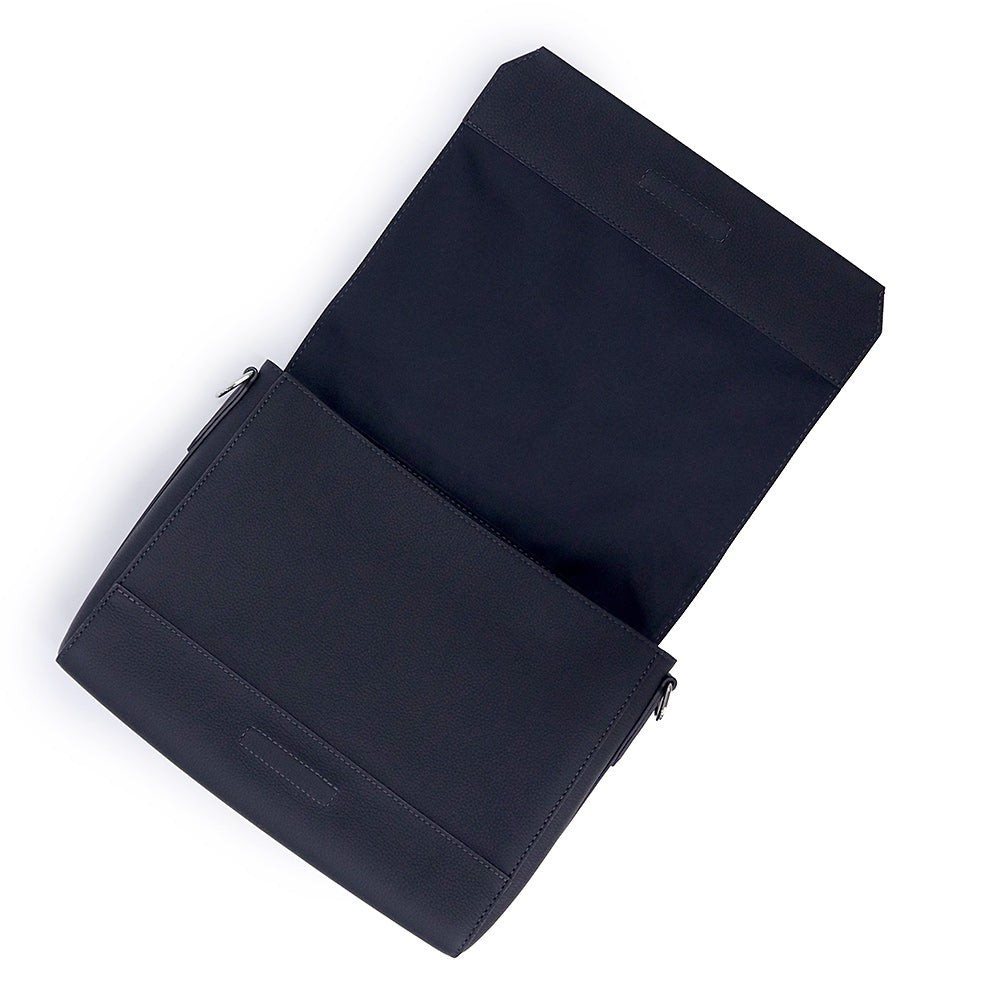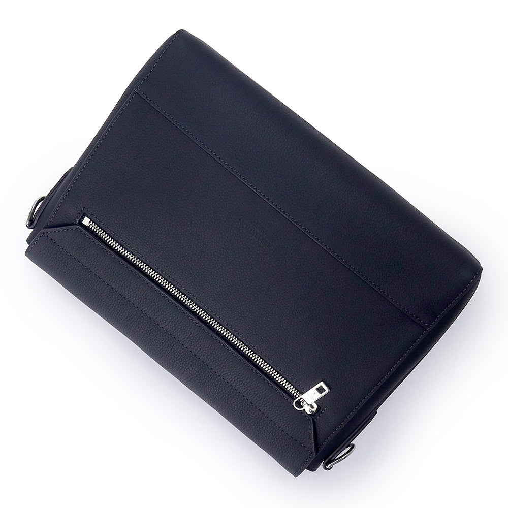 「LV アエログラム」コレクションならではのディテールが散りばめられた「テイクオフ・メッセンジャー」。ミニマルなデザイン、統一感のある色使い、コーナー部分を斜めにカッティングしたフラップが特徴です。2つの内ポケットと背面のファスナーポケットもあり、収納力も充分なアイテム。 |