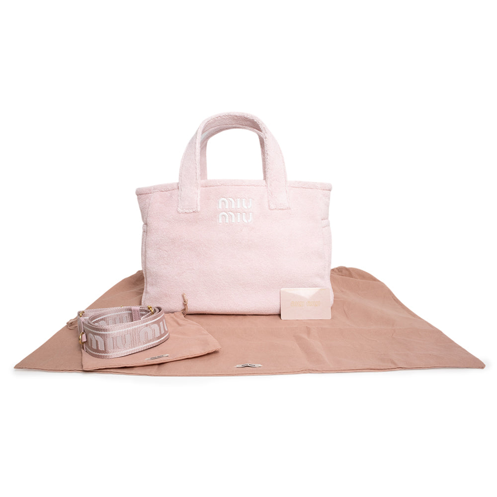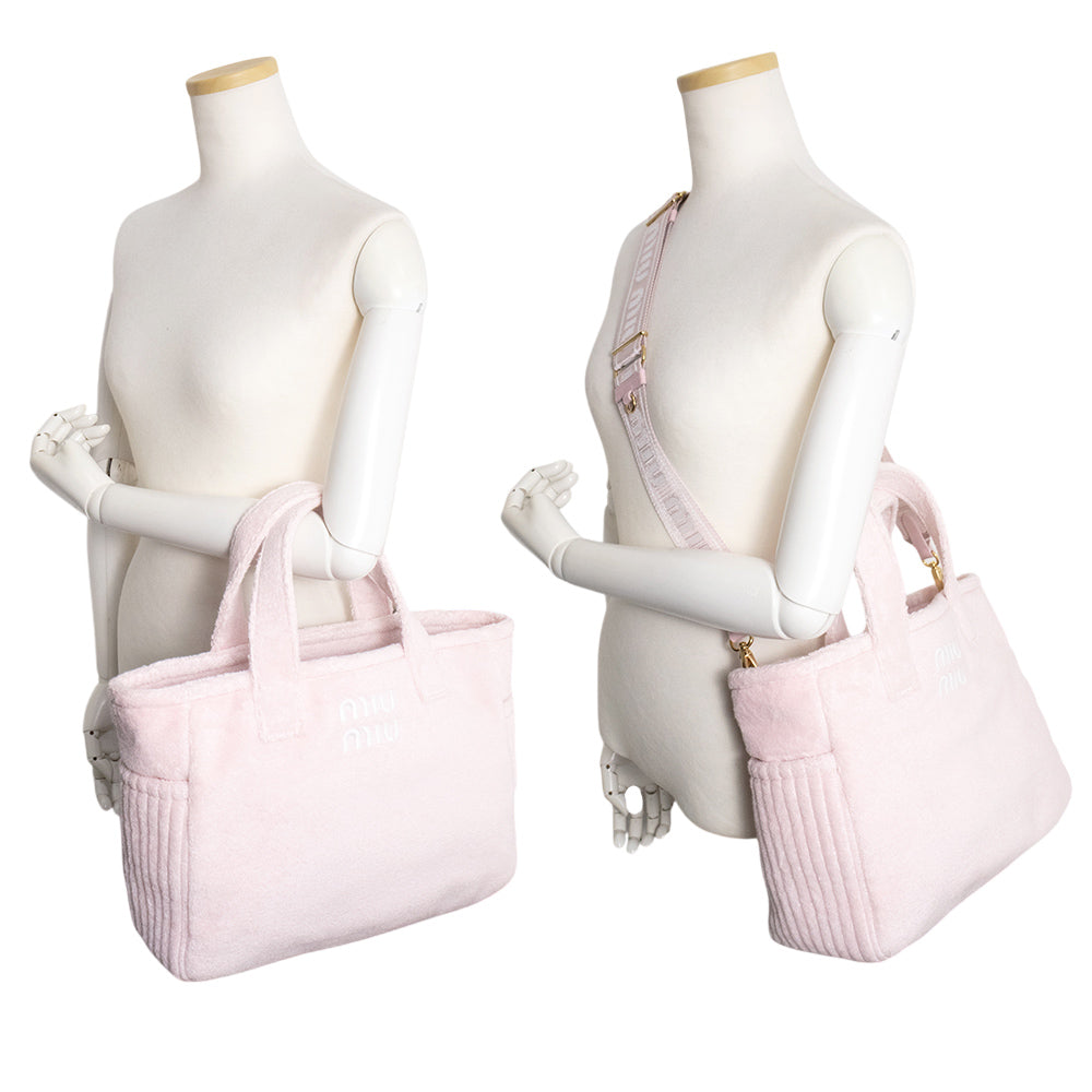 【新品・未使用品】miu miu ミュウミュウ 5BG236 テリークロス 2Way トート SPUGNA スプーニャ ALABASTRO アラバストロ ピンク 斜め掛け ショルダー ハンドバッグ ゴールド金具