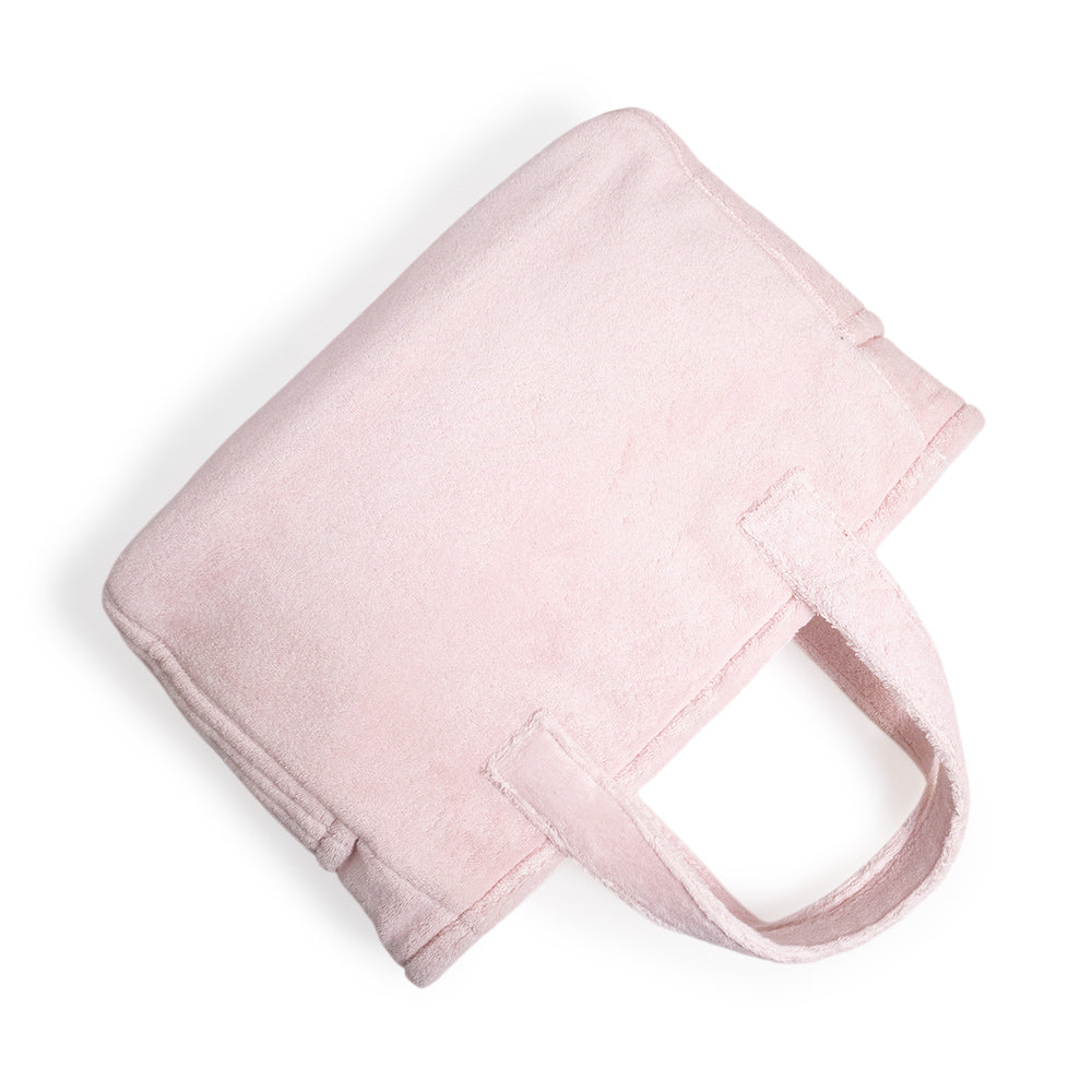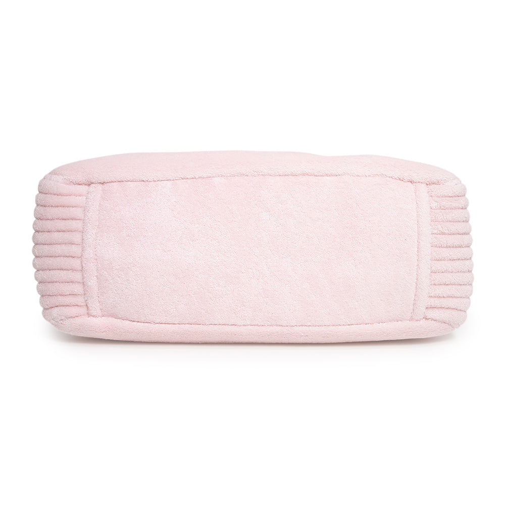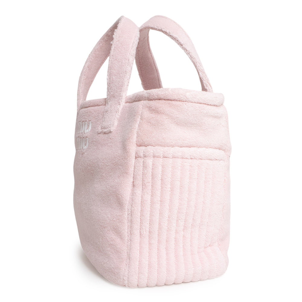 ふわふわとした肌触りのスプーニャ素材に、立体的な刺繍ロゴを配したミュウミュウの「テリークロス」トートバッグです。優しい色合いのアラバストロピンクとゴールド金具の組み合わせが、カジュアルな質感の中に華やかな可愛らしさを演出します。取り外し可能なショルダーストラップ付きの2Way仕様です。 |